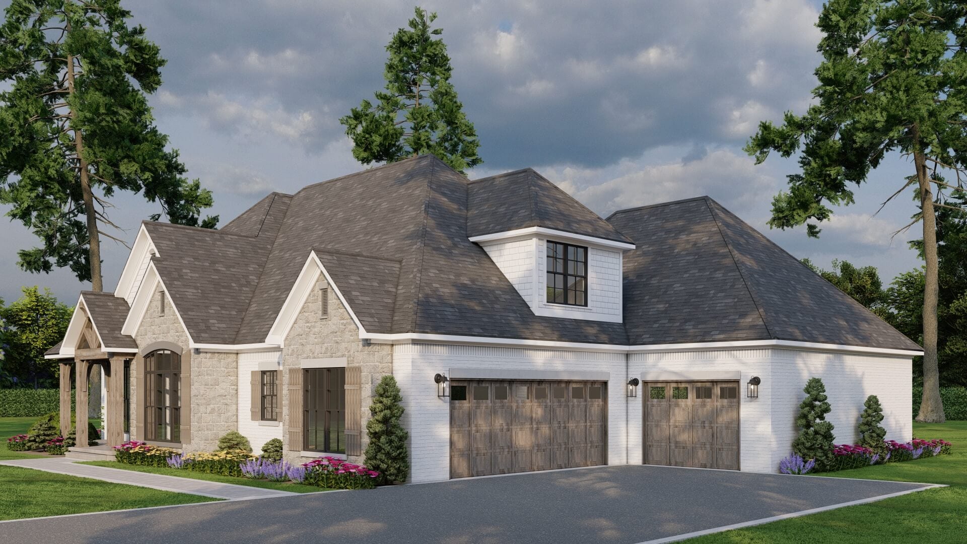 • Generous covered porches (718 sq ft) and side‑load 3‑bay garage enhancing outdoor living and curb appeal