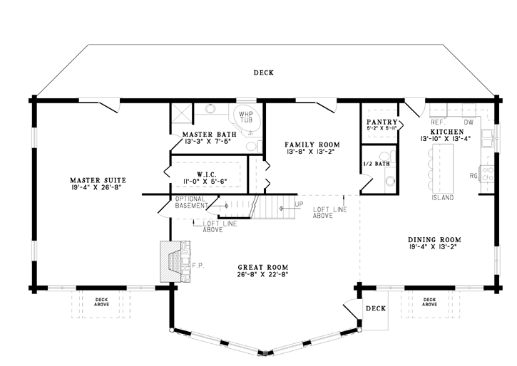 A stunning addition to our Barna Log House Collection, The Westwind IV invites you in through lovely bay windows and gable dormers with private decks. Inside, the bay windows give the huge Great Room a wonderful view and plenty of natural light, while the stone fireplace adds a sense of warmth to the space. Partially open to the Great Room, the Family Room provides even more opportunities to gather with family and accesses the rear Deck. To the right, you will find the Dining Room and Kitchen, which features a center island with seating for 4 and a spacious walk-in pantry. On the left side of The Westwind IV, your Master Suite awaits! The master bedroom is huge and boasts private access to the rear Deck, as well as a large walk-in closet. The Master Bath is sure to please with a corner whirlpool tub and separate shower. The kids will love their space upstairs, complete with a Loft open to the lower level and a full bath, which includes a whirlpool tub and separate shower. Bedrooms 2 and 3 are also found here, each with tons of closet space and small private Decks overlooking the front of the property. How would you customize this amazing house plan?