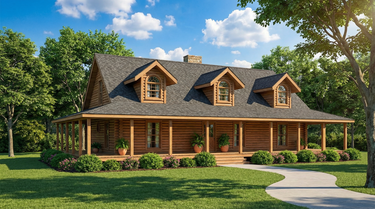 A stunning addition to our Barna Log House Collection, The Savannah paints a picture of trading in the hustle and bustle of the city for a cozy cabin with a wrap-around porch, where the only sound is the chirping birds. Inside creates this same feeling of serenity, with an open floor plan encouraging quality family time and a corner wood stove providing warmth to the whole Great Room space during the cold months. The rear of the open floor plan leads you into the Dining Room, where you can enjoy a great view of the 8-foot Grilling Porch and even directly access the space. The Dining Room opens into the Kitchen through an eat-at bar, making weekend grilling parties a breeze. Adjoining the Kitchen is the Laundry Room, which also accesses the Grilling Porch, perfect for transferring newly washed clothes onto a clothesline outside!