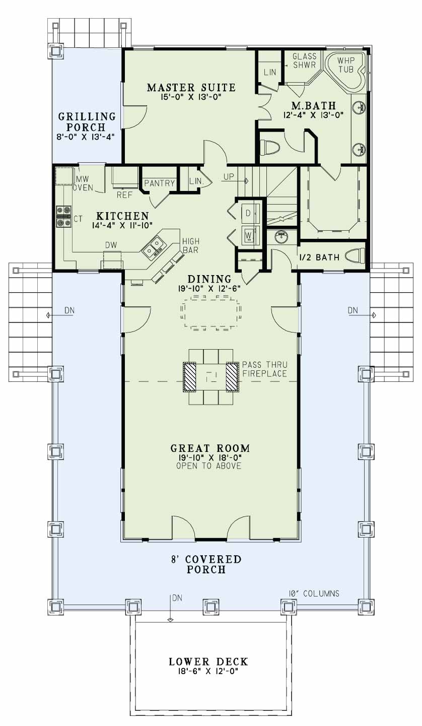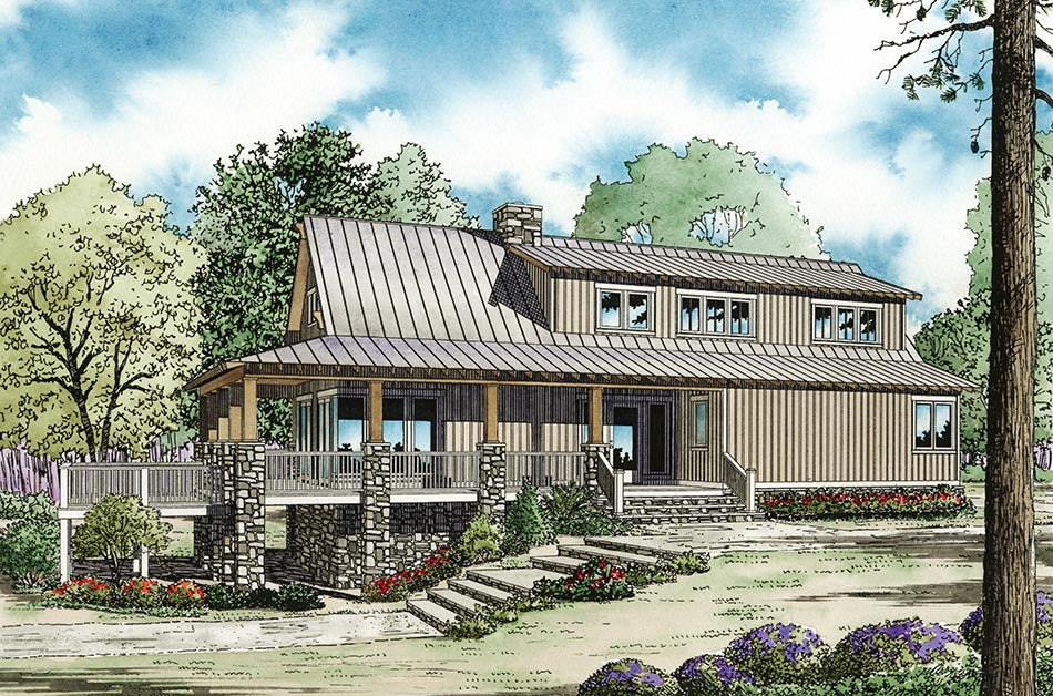 This house plan features a large covered wrap-around porch and rear deck that draw the outdoors in, inviting morning coffee, evening relaxation, or entertaining while enjoying scenic views. The thoughtful layout and rustic styling make NDG 1216 River Falls a house plan that blends practicality with the relaxed charm of a vacation home or permanent residence in a natural setting.