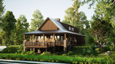 NDG 1216 River Falls is a charming 1.5‑story house plan offering about 2,207 square feet of living space, designed to deliver both comfort and rustic charm. This house plan is ideal for lake, river, or mountain properties — or any site where natural surroundings and outdoor living matter. With three bedrooms, two full bathrooms, and one half bath (on the main level), this plan balances efficient layout with inviting living areas.