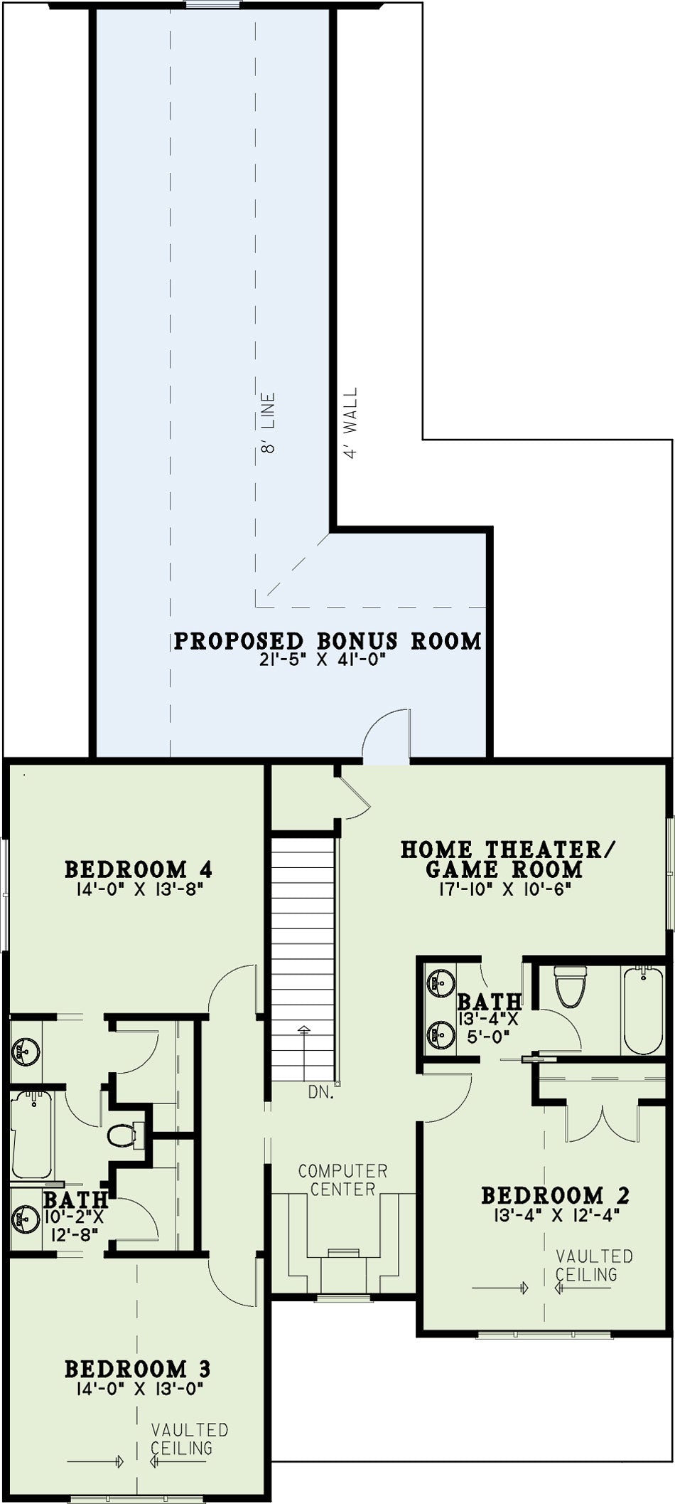 Spanning roughly 2,990 sq ft, House Plan 921 offers a two-story layout with a main-floor master suite and an upper level featuring three bedrooms, a bonus room, and a home theater/game area. A side-load two-bay garage is accessed through an adjoining porte-cochère, and to maximize build potential, a basement foundation is also available.