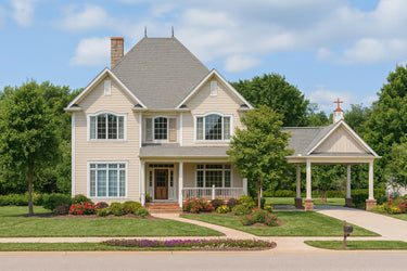 Convenient Garage Access: A porte-cochère leads to a side-load garage at the rear, blending practicality with curbside elegance.