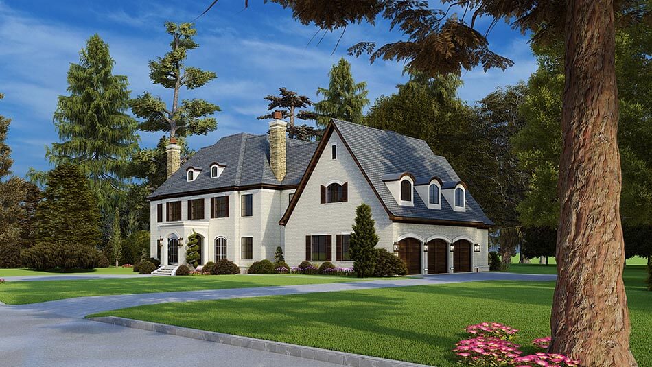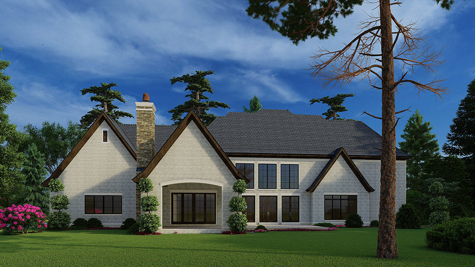This stunning European-style home offers 5,813 sq. ft. of refined living space, featuring 5 bedrooms, 5 full baths, 2 half baths, and a spacious open floor plan. Highlights include a vaulted great room with timber beams, gourmet kitchen, luxurious master suite, bonus room with kitchenette, and covered outdoor living with fireplace.
