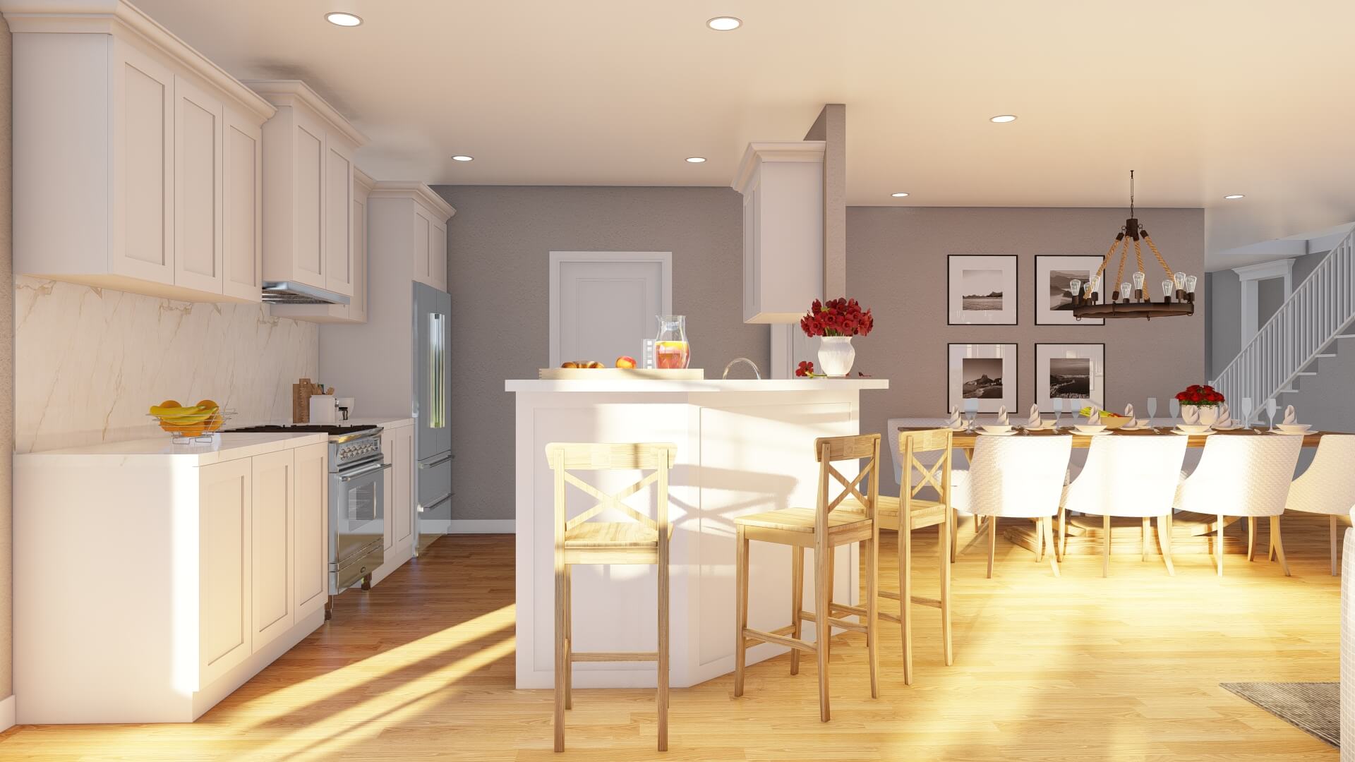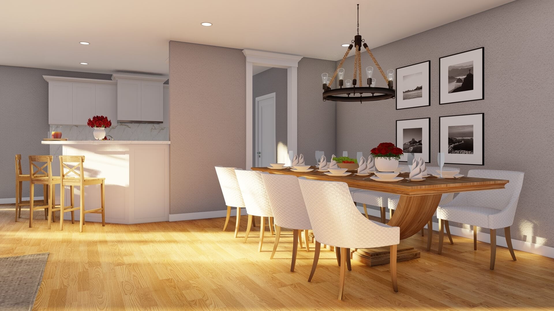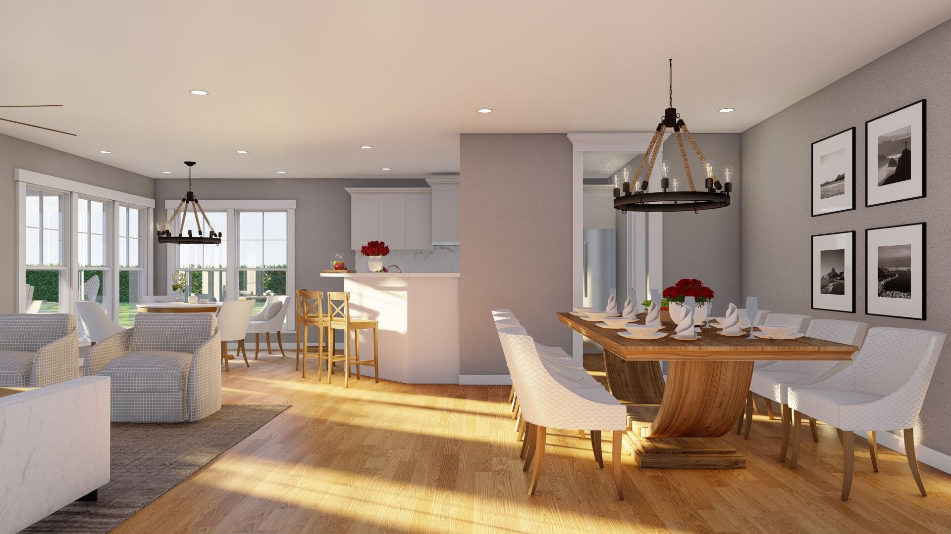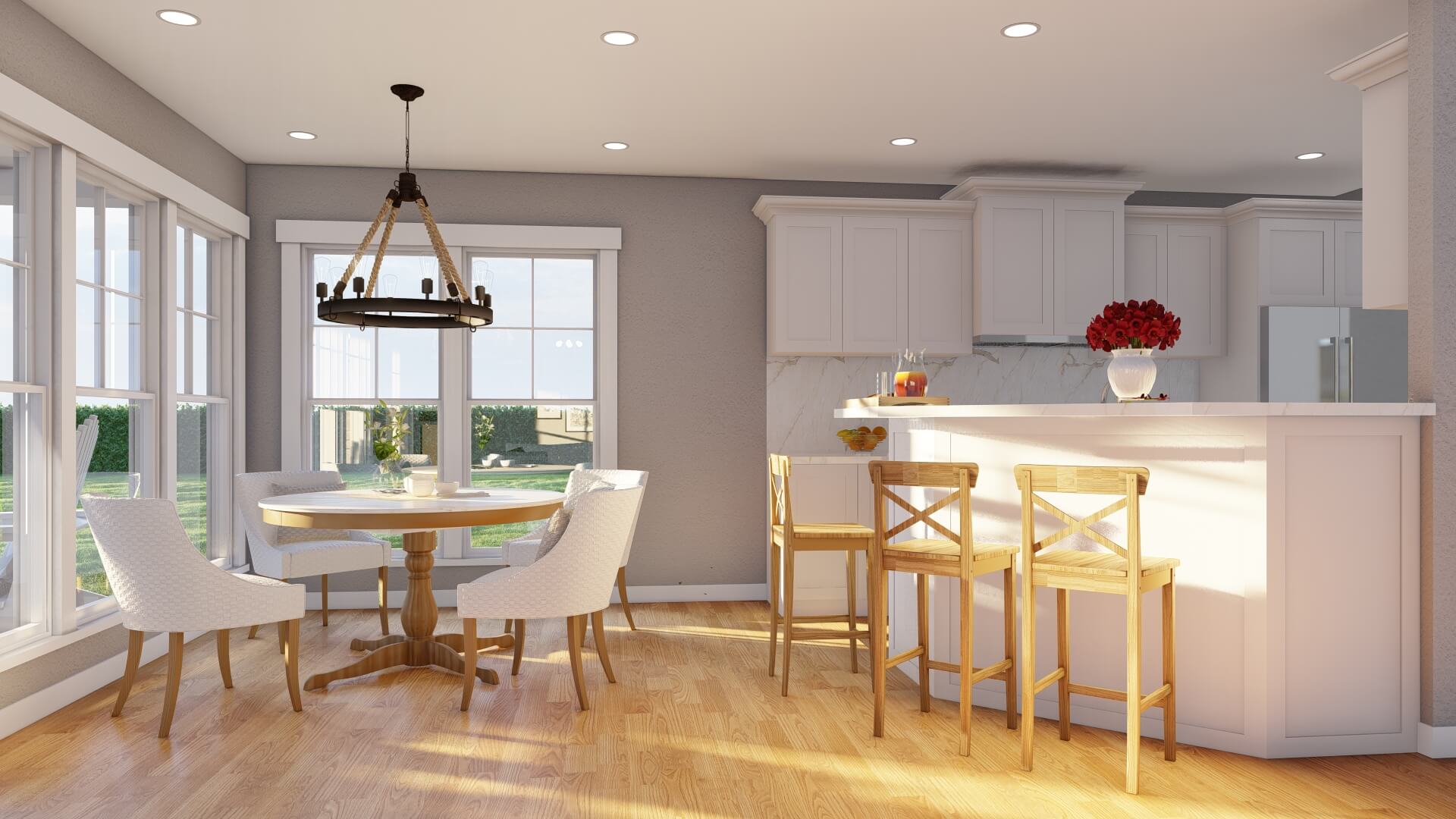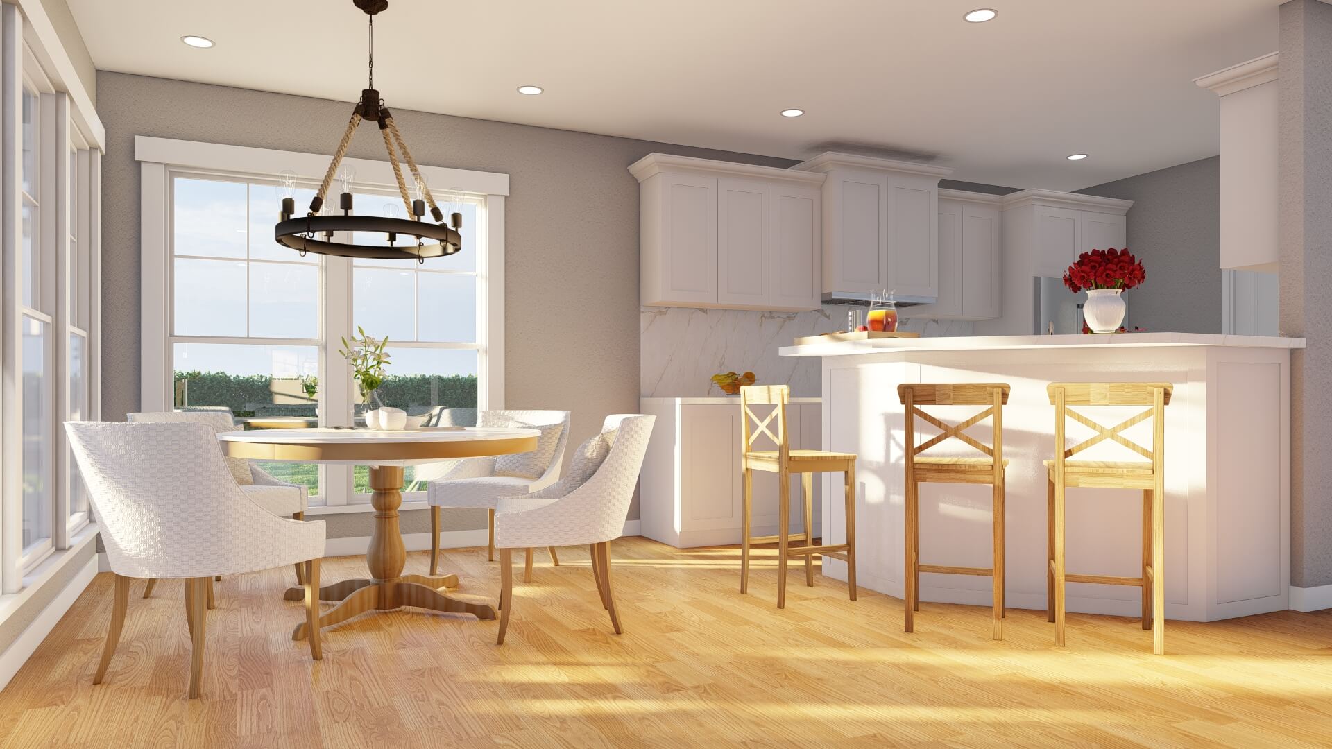 - Main floor includes open‑concept living: great room, dining area, breakfast nook, and kitchen — creating a welcoming, flowing living space