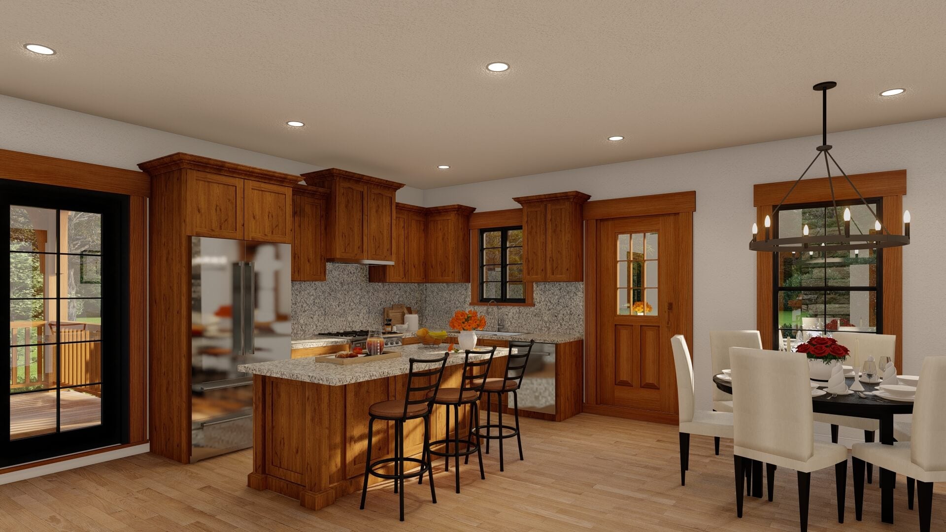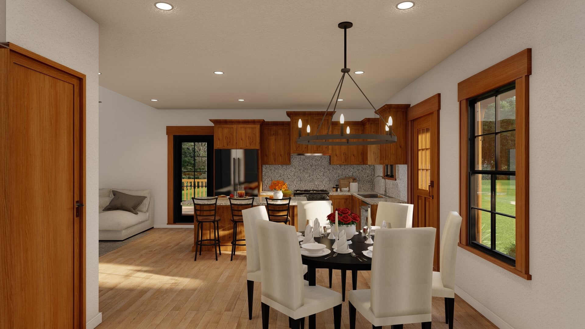 Covered porches or patios extend the living area outdoors, making it easy to enjoy morning coffee, evening meals, or entertaining in fresh air.