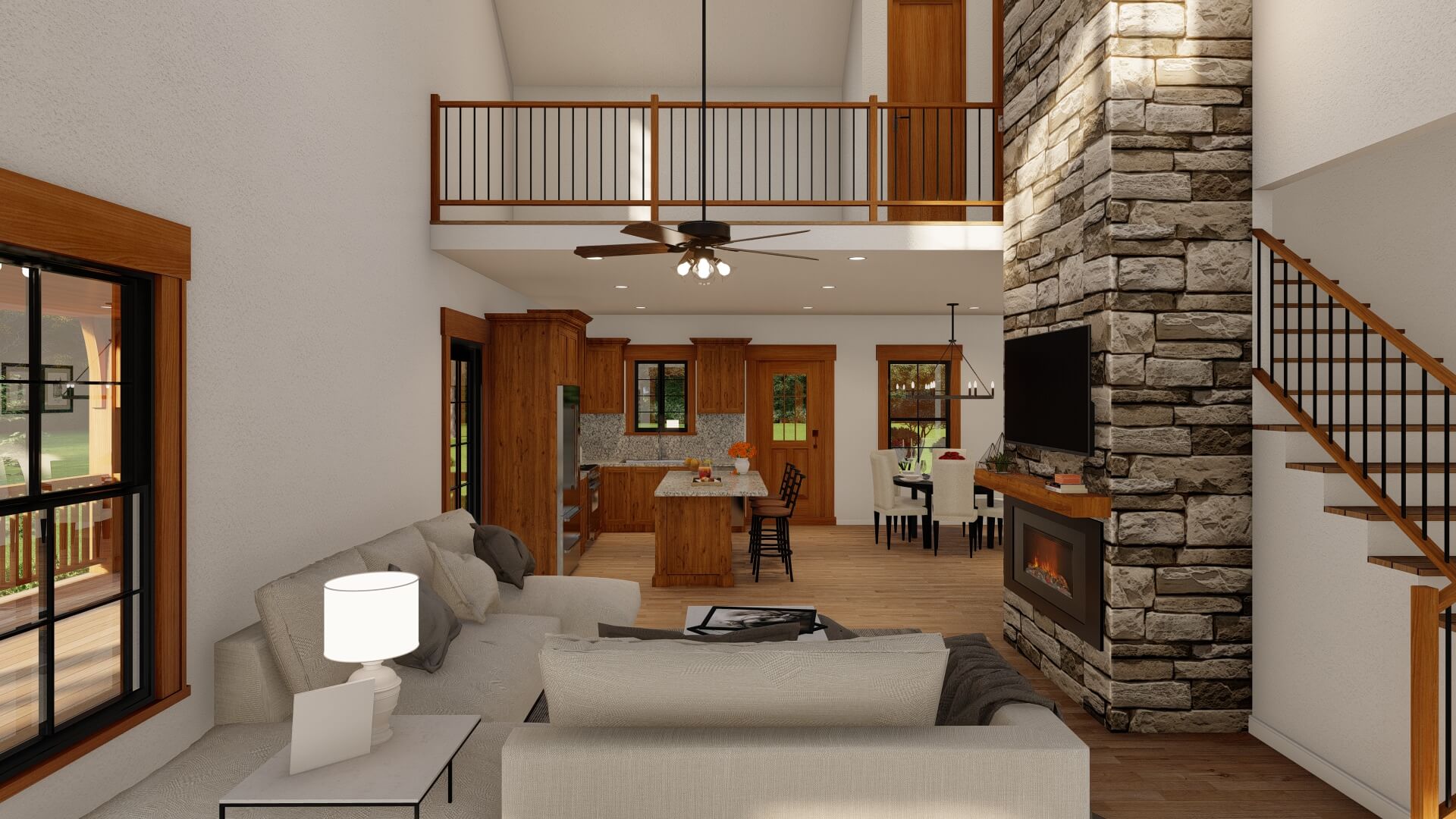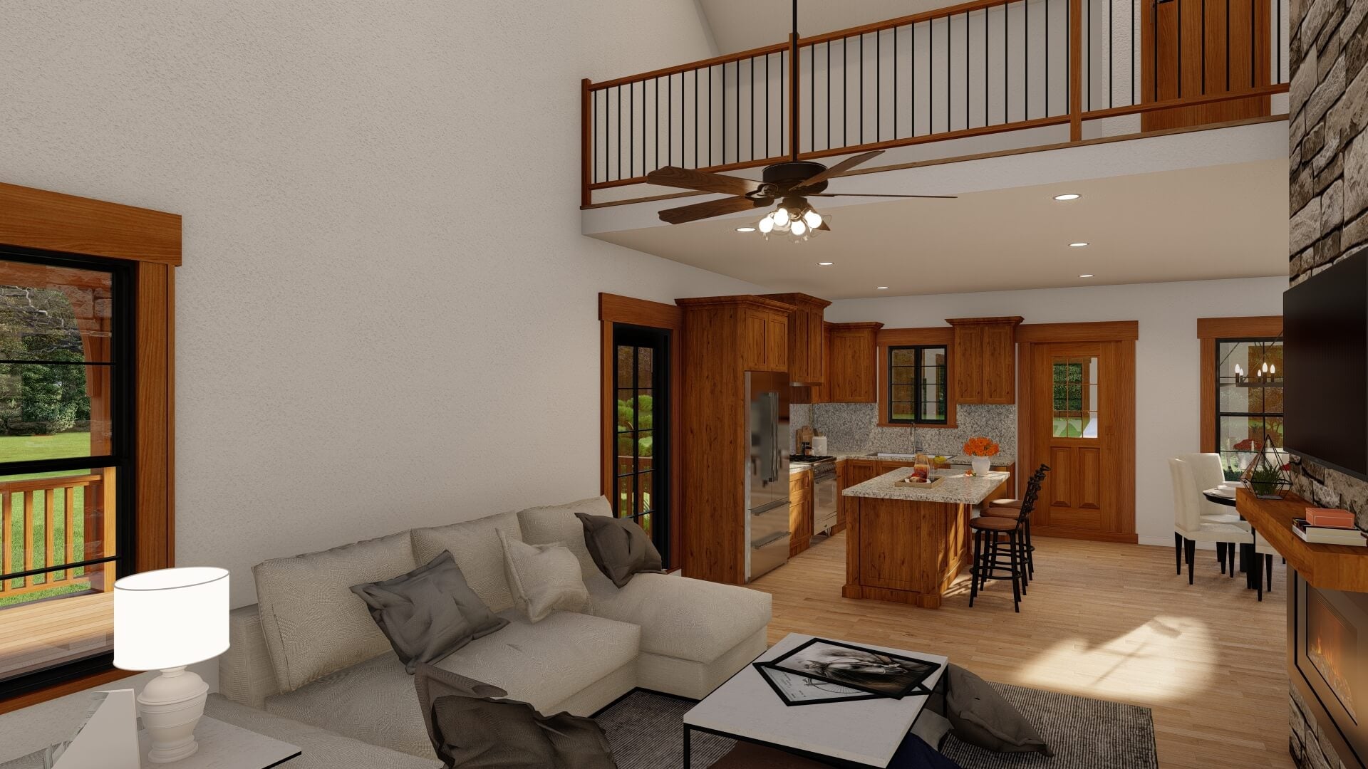 The heart of the home is a vaulted or cathedral great room with ample windows to bring in natural light. The kitchen, dining, and living areas flow together, making daily life and entertaining easy.