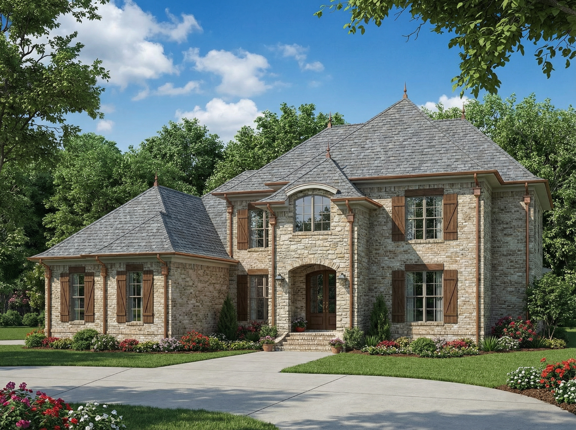 Dramatic rooflines, stone accents, and elegant interior touches create curb appeal while designer essentials like easy flow, functional spaces, and smart bonus areas ensure livability.