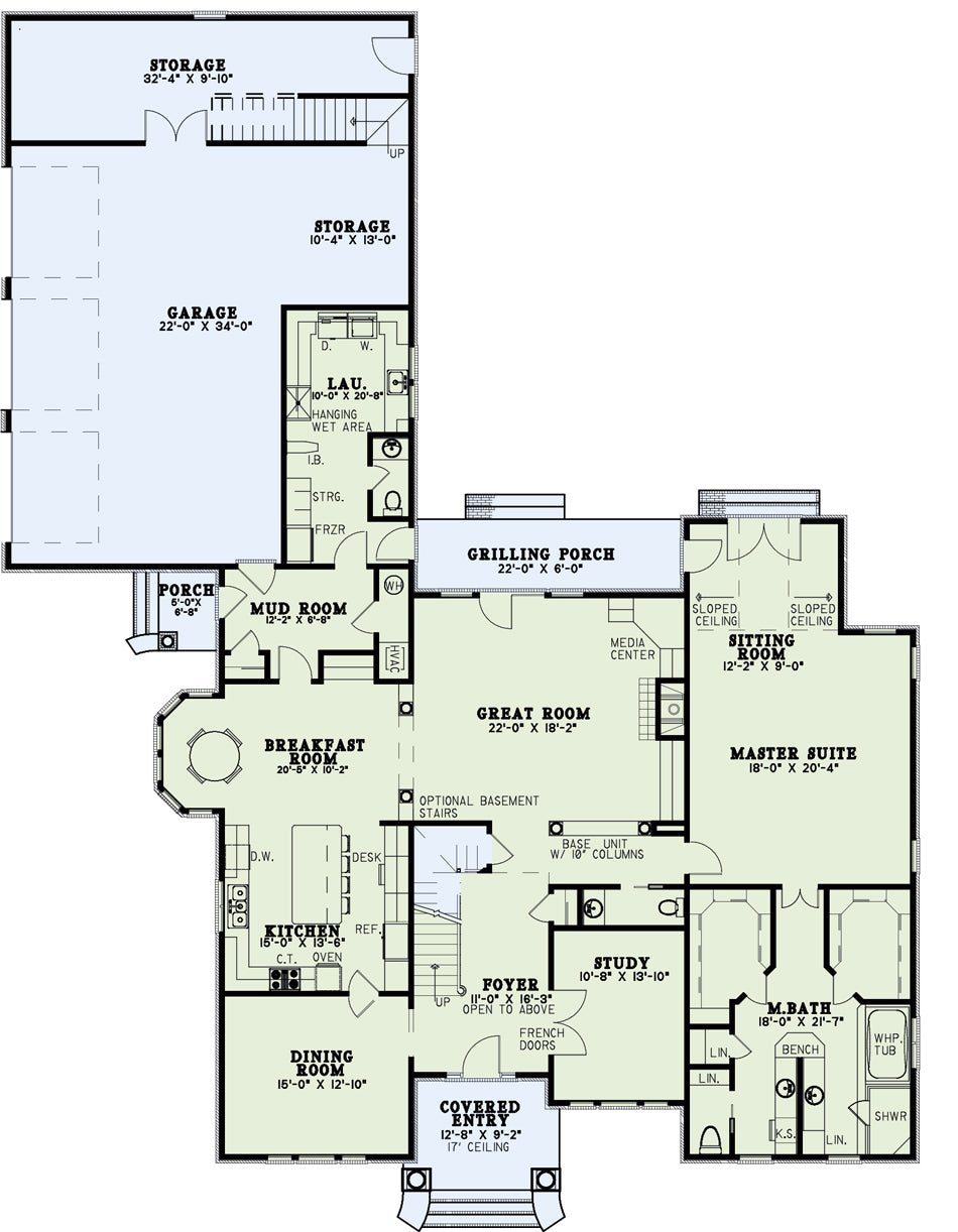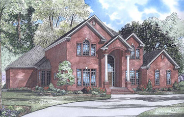 Columns and an arched entryway welcome your guests inside this Nelson Design Group home. Prepare your cuisine in the kitchen, definitely designed with the chef in mind. Serve your guests in the elegant dining room or breakfast room with bay window. After dinner, mingle by the fireplace in the enormous great room before calling it a night. Take a trip upstairs to check on the kids before retiring to your private master suite on the main floor of this home. A large game room and rear-grilling porch are a few more amenities included in this charming design.