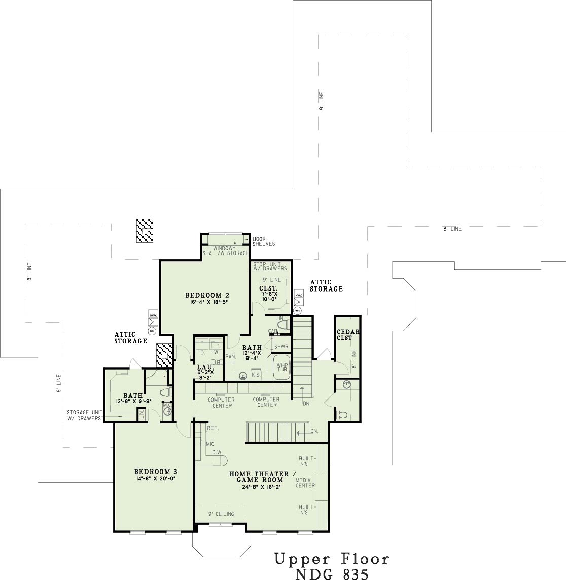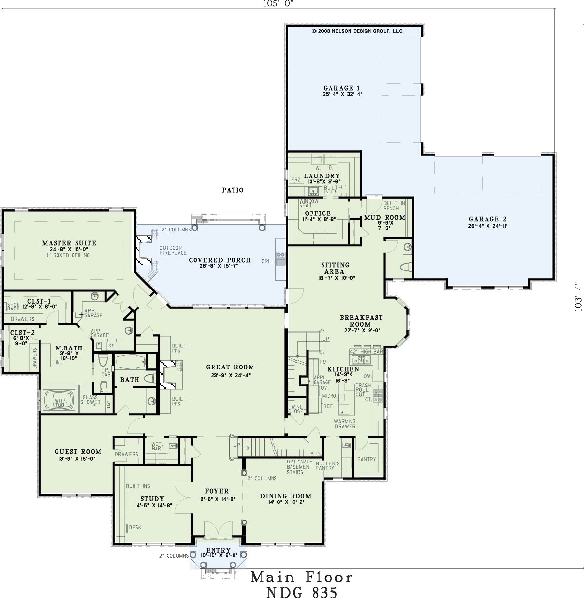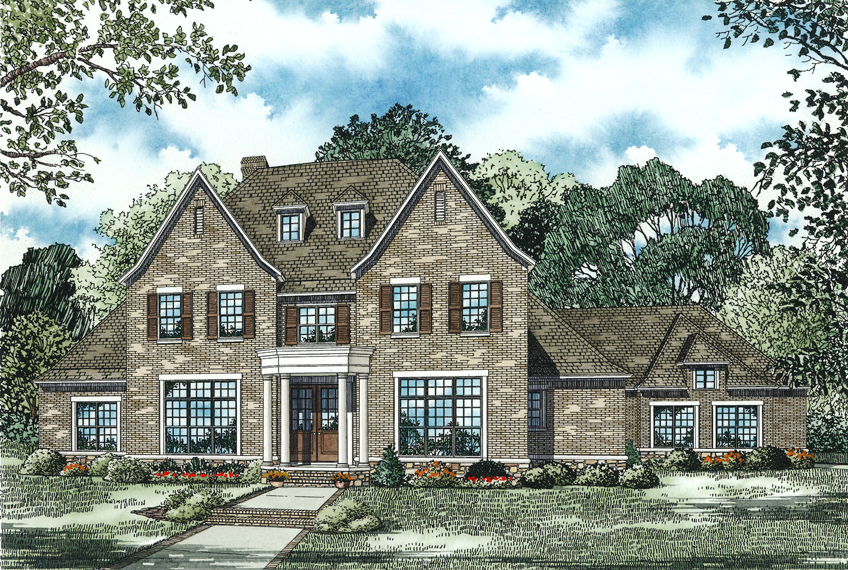 Columns usher your guests inside this amenity-filled Nelson Design Group home. A study with built-in shelving and an elegant dining room occupy the spaces on each side of the foyer. A wet bar just off the enormous great room will simplify entertaining your guests. Located at the rear of this design, the private office is sure to provide a place for peace and quiet. The luxurious master suite with whirlpool tub and two closets can also be found on the main floor of this home. Upstairs, you'll find two additional bedrooms as well as a huge home theater and built-in computer center.