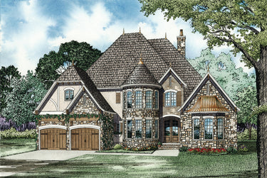 House Plan NDG 1214 – Stone Castle: Elegant European Design with Grand Living Appeal