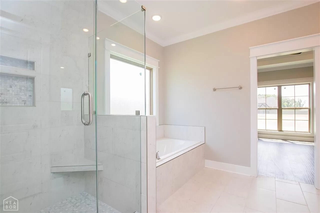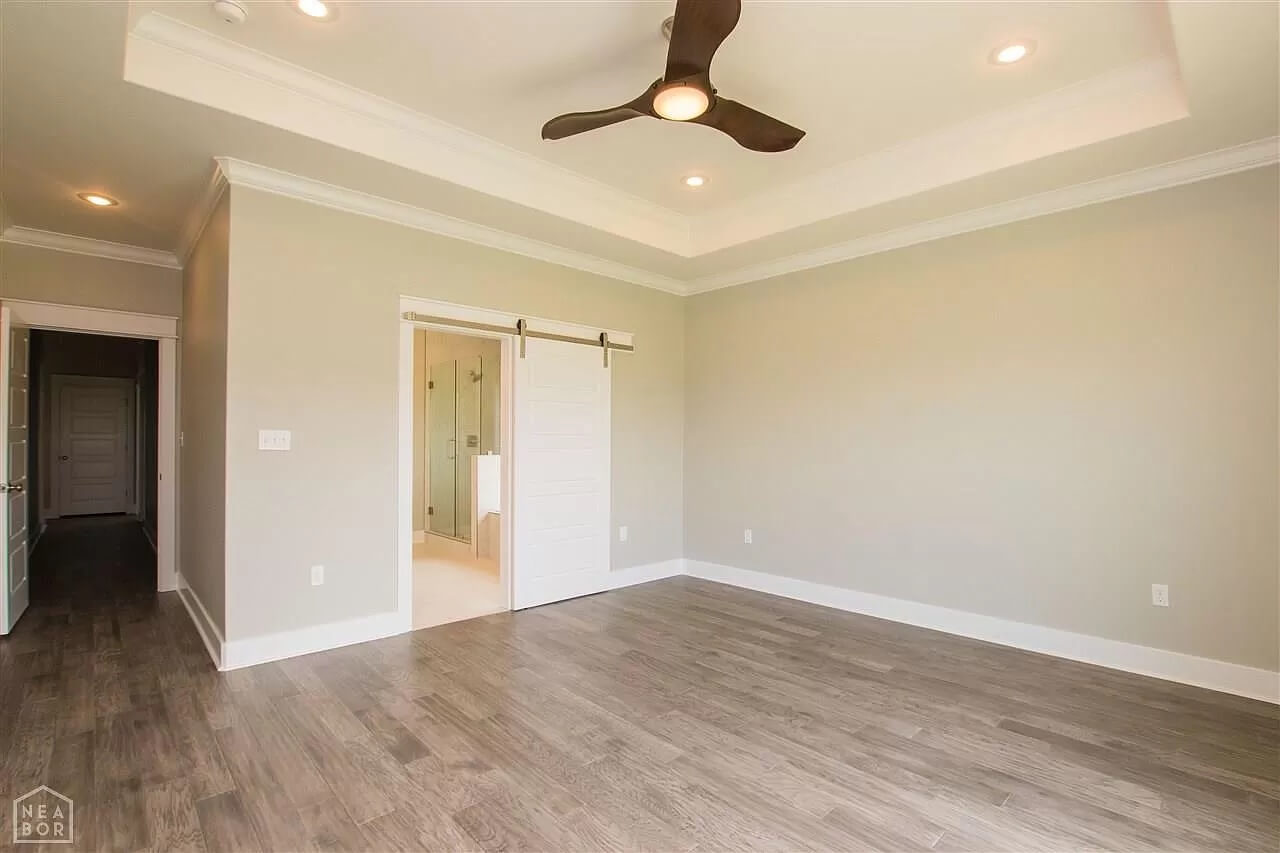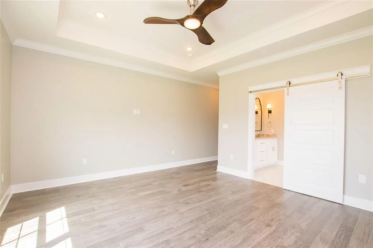 - Master suite with a 10‑foot boxed ceiling, private bath featuring a whirlpool tub, corner shower, and a spacious walk‑in closet — designed for comfort and privacy.