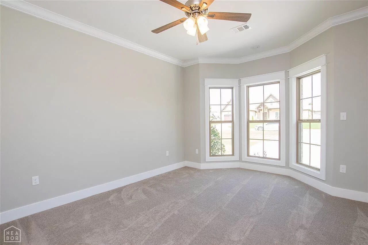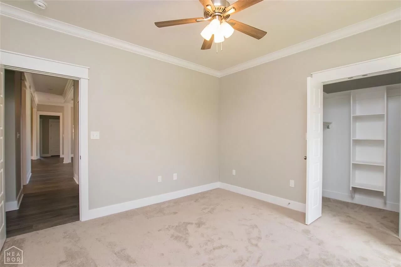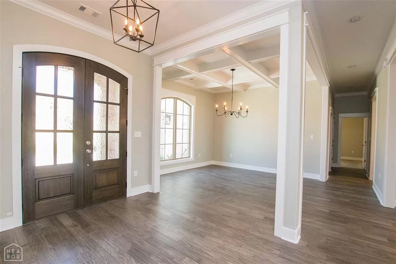 - Master suite with a 10‑foot boxed ceiling, private bath featuring a whirlpool tub, corner shower, and a spacious walk‑in closet — designed for comfort and privacy.