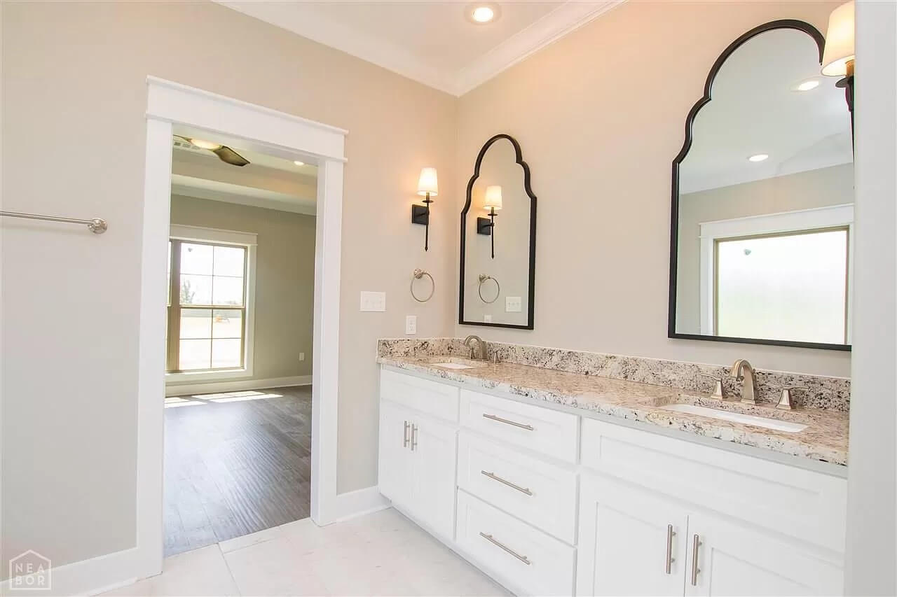 - Two additional bedrooms on the opposite side of the home sharing a hall bath — ideal for children, guests, or flexible room use without sacrificing privacy or convenience.