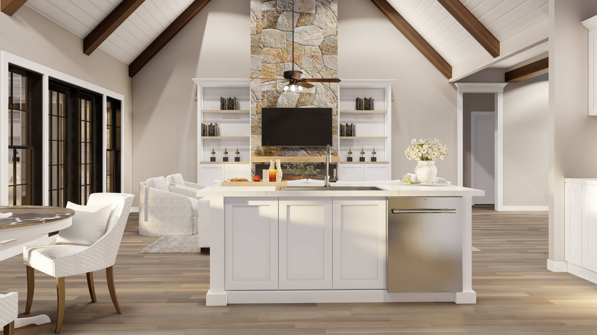 - Great Room with vaulted ceiling and fireplace, opening to a breakfast/kitchen area — creating a warm, open flow ideal for daily living and gatherings