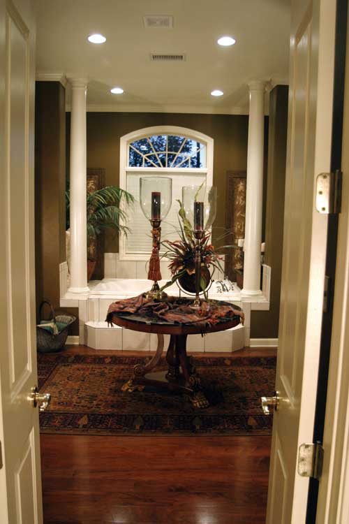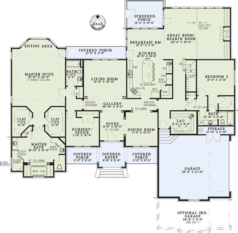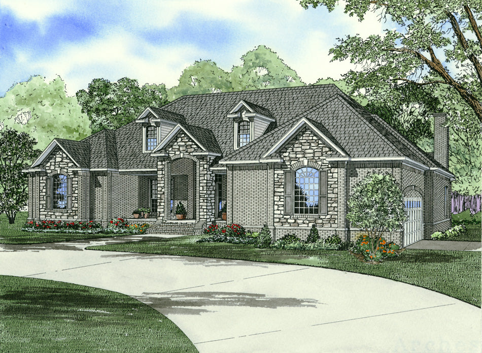 A blend of brick and stone create instant appeal in this Nelson Design Group home. Enjoy the column lined dining room and gallery before heading into the living room for conversation. This kitchen is spacious enough for any chef and features an island bar with seating. Nearby, a breakfast room and screened porch lend the perfect places for mealtime. A second living area, with a vaulted ceiling and fireplace, can be found at the rear of this home. Relax in the lap of luxury in this exquisite master suite. The spacious bedroom features a boxed ceiling and sitting room while the master bath houses a whirlpool tub flanked by columns.