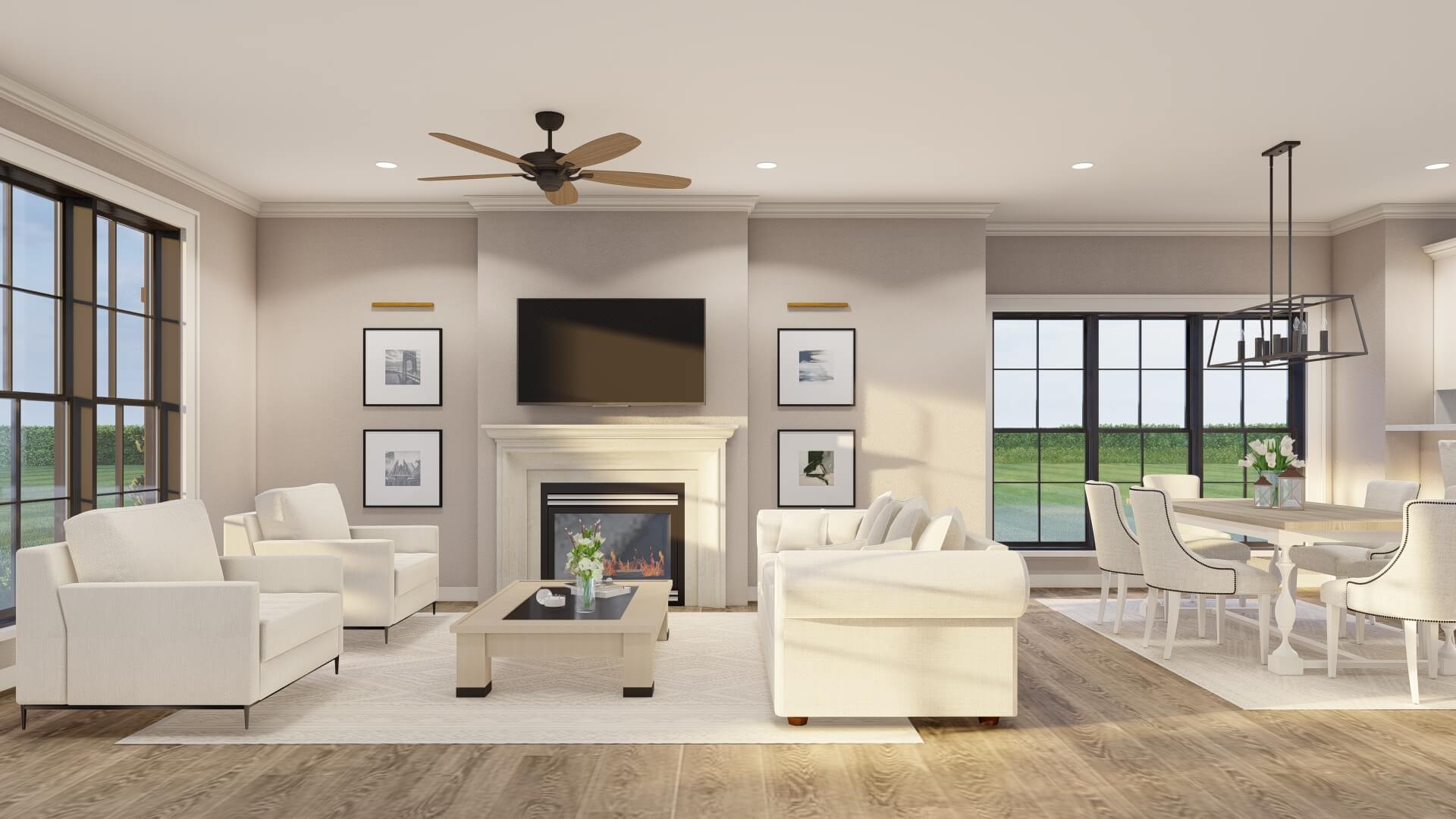 - Open main-floor living area with a comfortable flow between the kitchen, dining, and living spaces