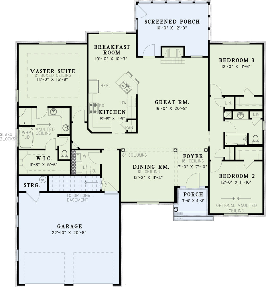 You’ll enjoy entertaining in this elegant, open-space floor plan. The dining room with column accents is ideal for formal dinner parties with coffee to follow in the spacious and comfortable great room where you’ll find a cozy fireplace and easy access to the kitchen for snacks. When the guests have departed you can retire to your master suite for a relaxing soak in the large whirlpool tub or enjoy the privacy and comfort of the large, screened back porch.