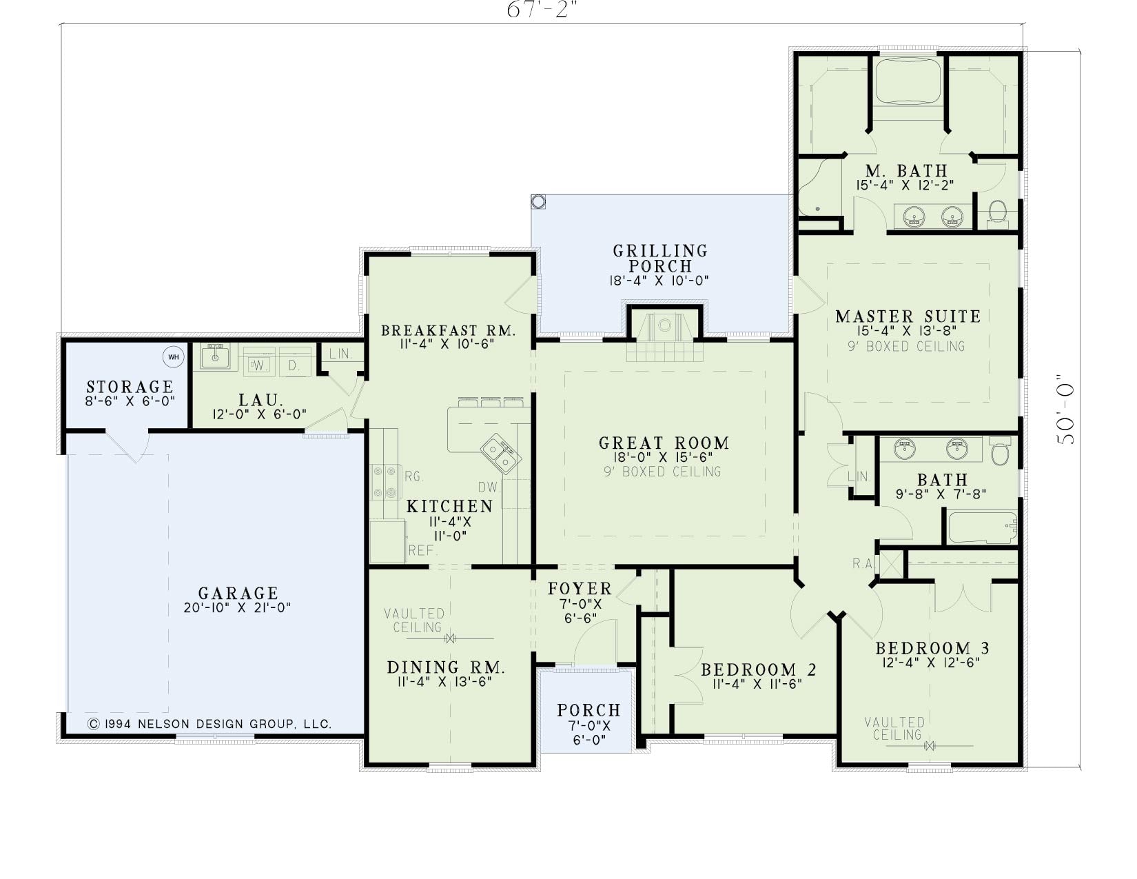 Every family member will find something to love about this Nelson Design Group home. Dad will enjoy the large grilling porch at the rear for demonstrating his talent with the grill, as well as the additional storage space in the garage. Mom is sure to appreciate the cozy fireplace in the great room and the added convenience of the eat-at bar in the kitchen. Everyone will be thankful for the privacy of their own bedrooms, but also for the fact that any family member is also just a few steps away if needed.