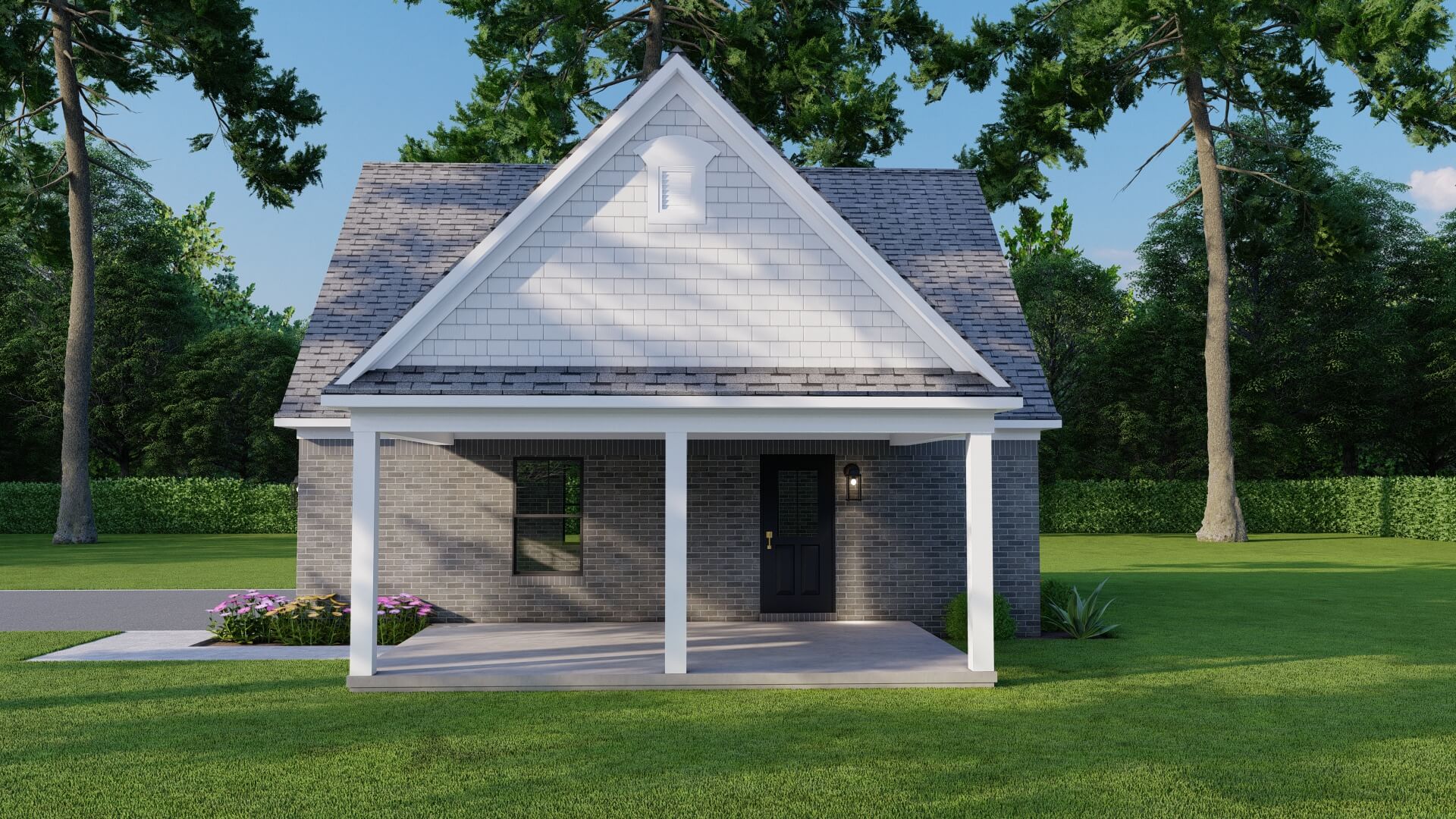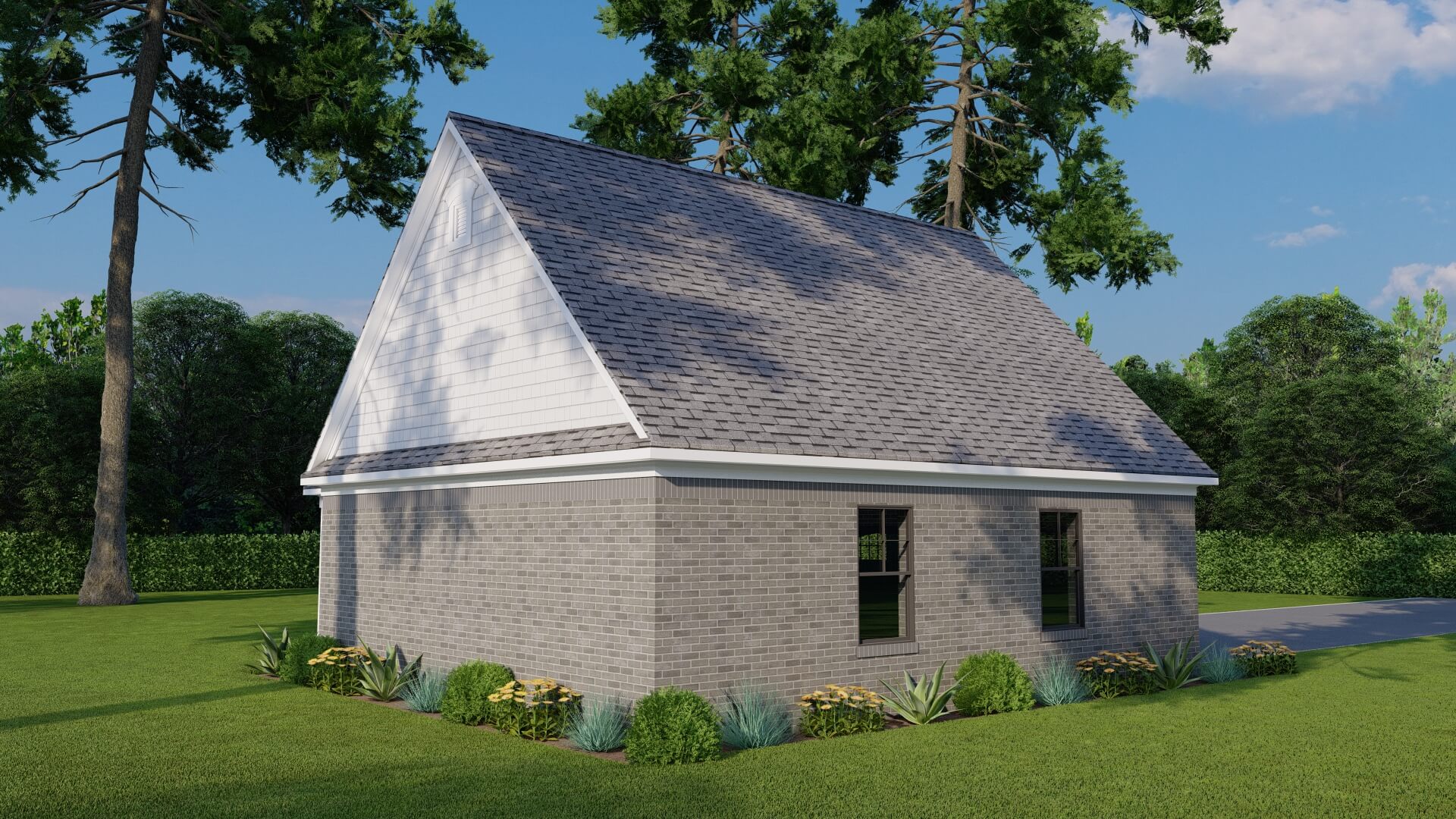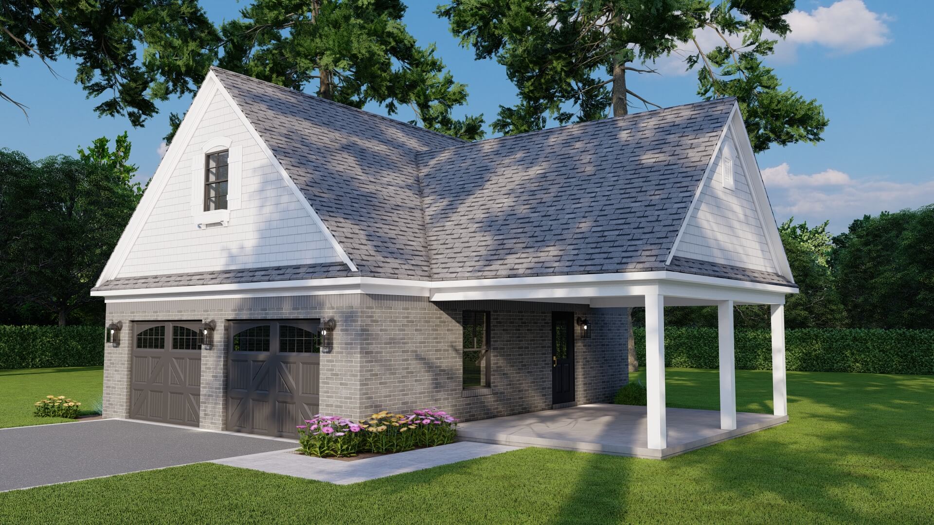 With its clean, practical layout and easy indoor-outdoor flow, this plan is ideal for use as a pool house, guest retreat, workshop, or casual entertaining space—all housed under a classic shingle roof with a striking 12:12 pitch.