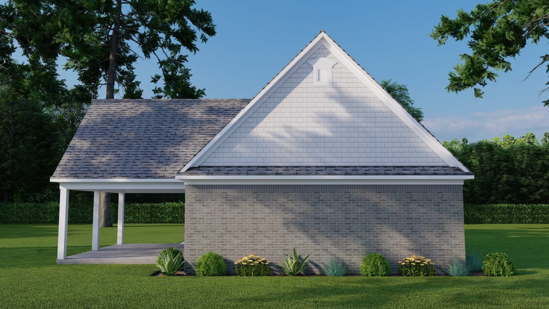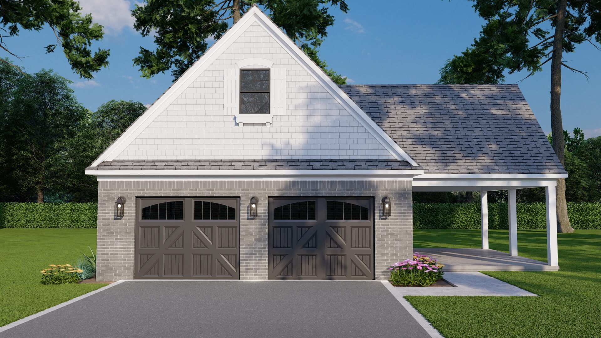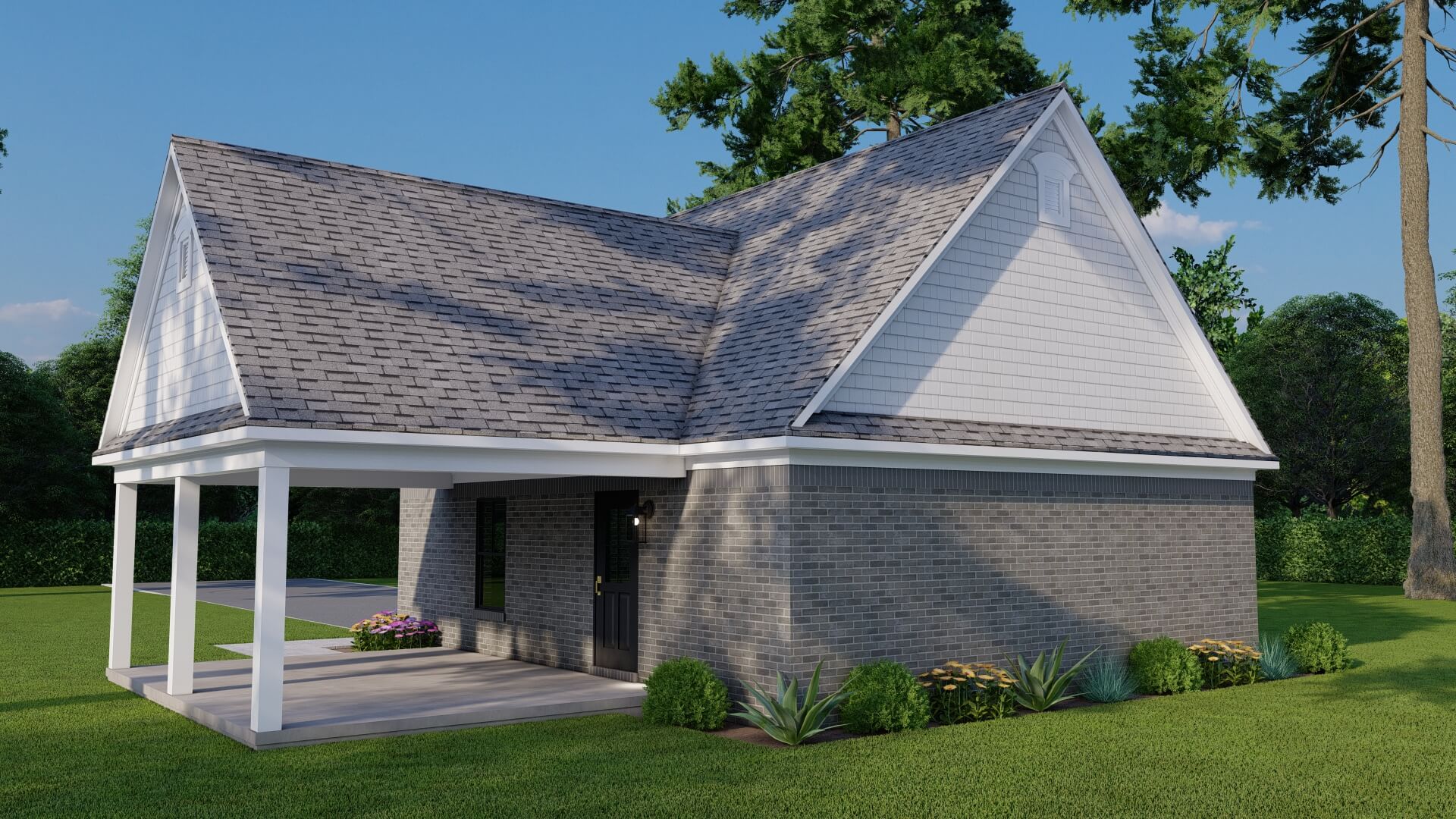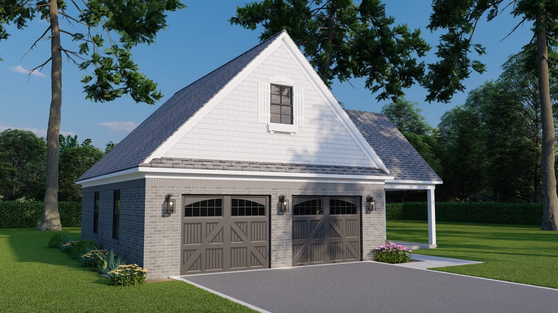 With its clean, practical layout and easy indoor-outdoor flow, this plan is ideal for use as a pool house, guest retreat, workshop, or casual entertaining space—all housed under a classic shingle roof with a striking 12:12 pitch.