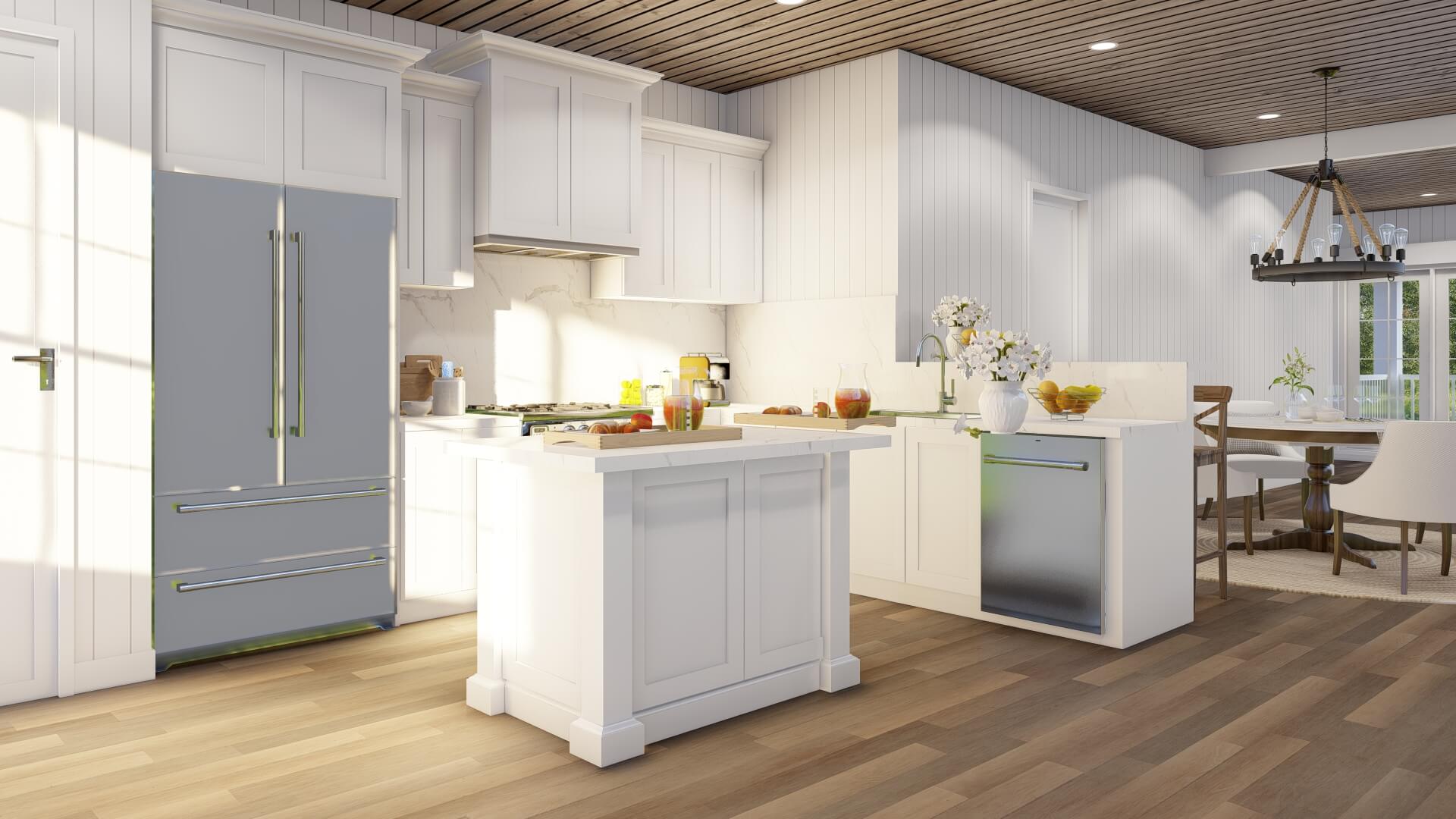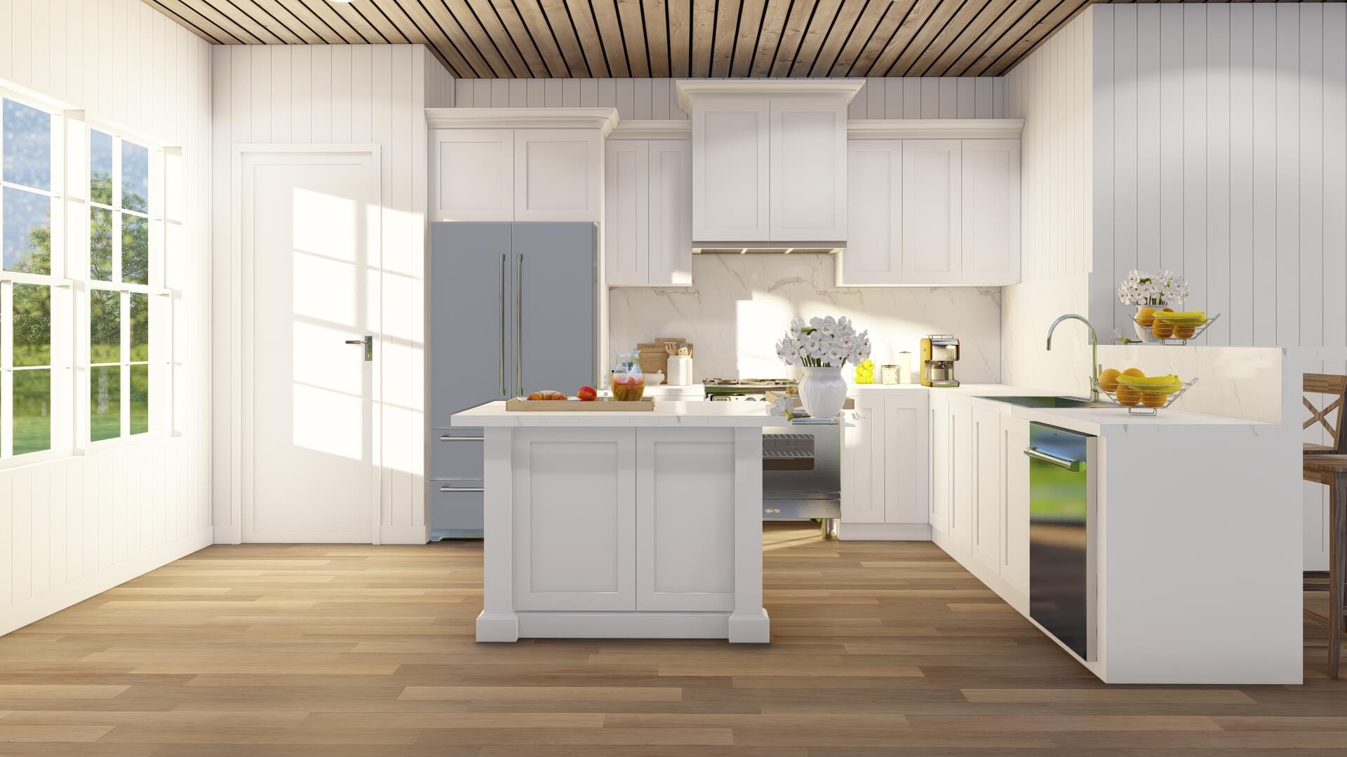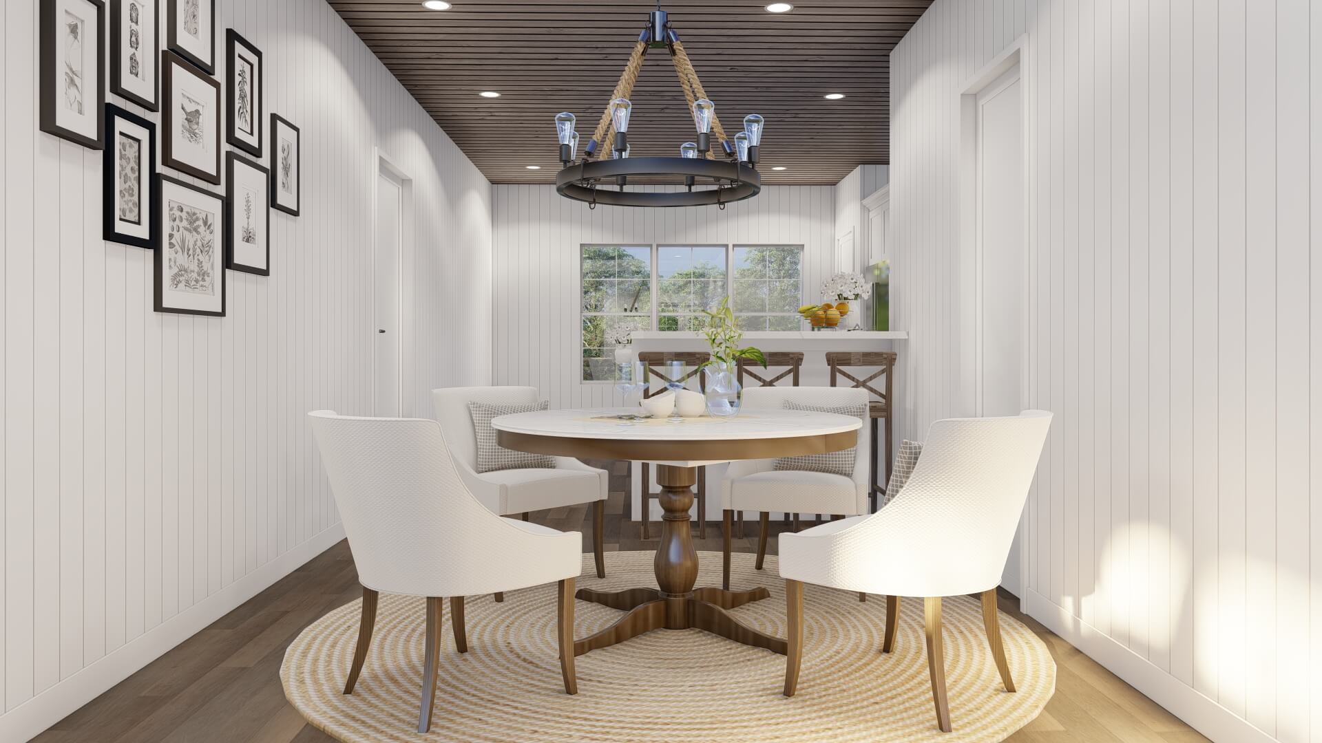 - Upper‑level open floor plan unites kitchen (with island and eating area), living space, and access to a covered balcony overlooking nature—ideal for casual mornings or entertaining.