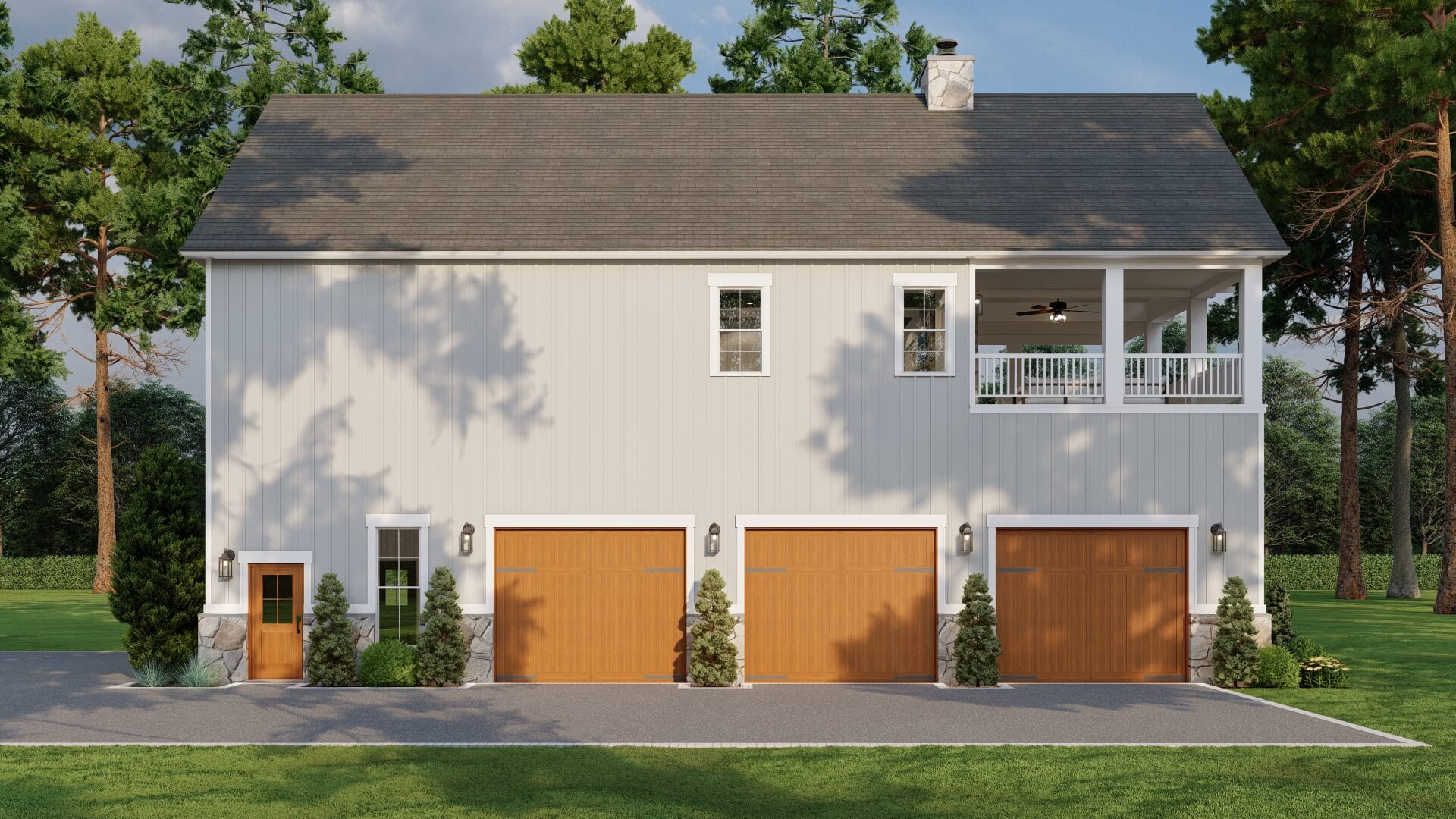 - 3‑bay front‑load garage (versatile vehicle/RV space)
