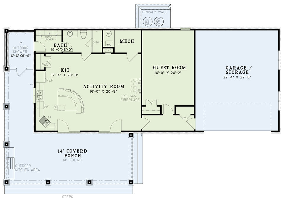 Pool House 1483 Hagan Drive, Garage & Pool House Plan