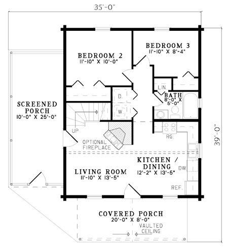 A stunning addition to our Barna Log House Collection, The Spruce Creek is the vacation home you’ve been looking for! Step onto the gorgeous front porch with a vaulted ceiling and log accents and into the open floor plan, which incorporates the Living Room and Kitchen/Dining into one space. An optional corner fireplace is sure to add warmth to this space and encourage quality family time. Take the gathering outside to the Screened Porch, where you will never have to worry about pesky bugs again! Back inside, a hallway leads way to a functional laundry room, hall bath, and Bedrooms 2 and 3. Upstairs is entirely devoted to your Master Suite, complete with two large closets and a private Master Bath with dual vanities. How would you customize this amazing house plan?