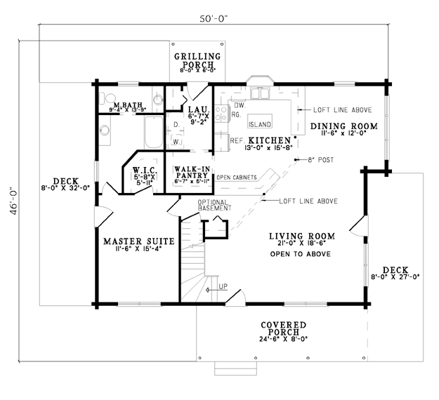 A stunning addition to our Barna Log House Collection, Etowah takes you straight into the Living Room from a charming front porch. The Living Room features access to the side Deck and joins with the Dining Room, which enjoys a great ambience of natural light from the bank of windows to the right. The loft line from above seems to separate these spaces from the Kitchen, which has tons of counterspace, a wall of open cabinets, a center island, and a large walk-in pantry that accesses the Laundry Room. The Laundry Room serves as entry to the cozy Grilling Porch, ensuring any dirt that may be brought in is limited to one space.