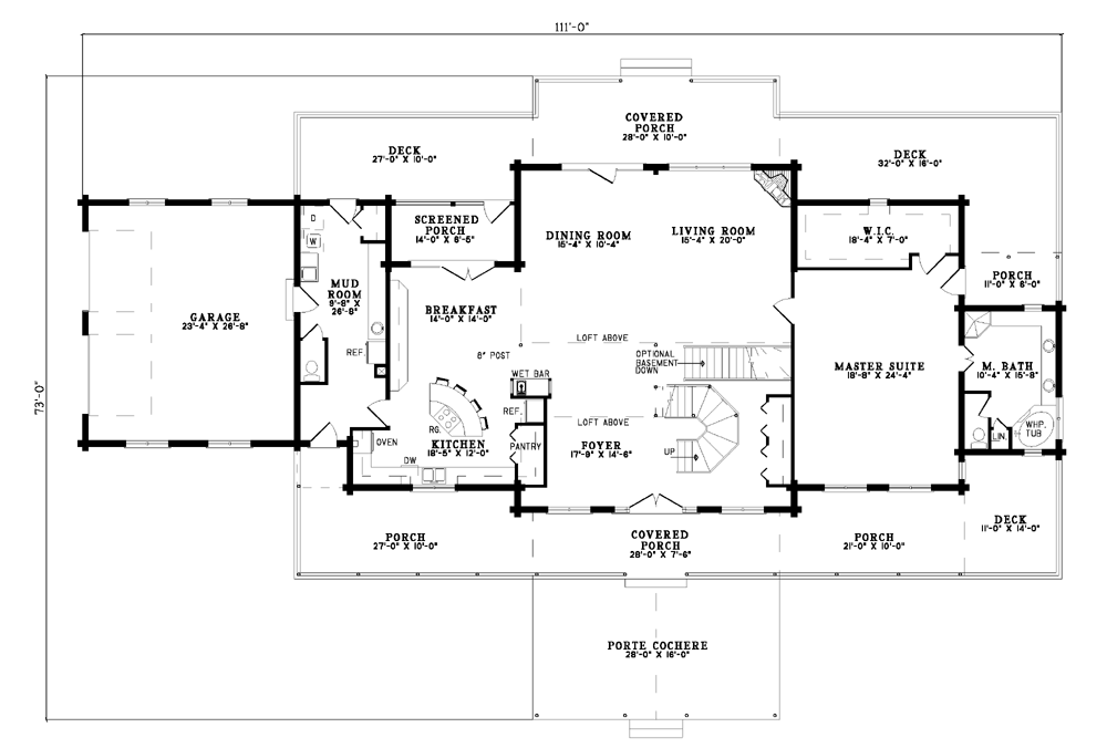 NOTE: Barna plans are intended for log exterior walls. Converting these to 2X6 exterior walls requires modification and will be subject to additional modification cost. Contact one of our home plan specialists today to discuss modification requirements by emailing info@nelsondesigngroup.com or calling 870-931-5777
