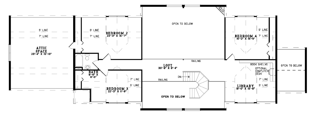 On the right side of The Bradford, you will find your luxurious Master Suite. The huge master bedroom looks out onto the front porch and deck and even accesses a private rear porch adjoining one of the rear decks. A huge walk-in closet provides storage space for all your wardrobe essentials, and your Master Bath has tons of counterspace with dual sinks, a corner shower, and a corner whirlpool tub, all catered to your rest and relaxation. Upstairs is the perfect space for the kids! A spacious Loft lies in the center, leading way to Bedrooms 2 and 3 on the left, with a hall bath in between. Bedroom 2 is the largest of the upstairs bedrooms and features access to a huge attic space, while Bedroom 4 on the right enjoys the largest closet. Across from Bedroom 4 is a charming Library, complete with book shelves and an optional computer desk. There is plenty of room for the kids to set up bean bag chairs and read the day away! How would you customize this amazing house plan?