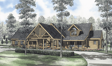 A stunning addition to our Barna Log House Collection, The Bradford is sure to suit the whole family. A breathtaking porte-cochere leads you onto the wrap-around porch, where you can step into the Foyer. Two sets of stairs, in addition to the Loft above are visible, as well as the open floor plan, making the Dining and Living Rooms ahead into one large space. A corner fireplace in the Living Room allows for casual gatherings with family, and the Dining Room provides easy access to the rear Covered Porch and adjoining Decks for the ultimate outdoor experience. Before stepping into the Kitchen/Breakfast Nook combo, you will be delighted to see a convenient wet bar for prime entertaining. The Breakfast Nook features a spacious breakfast bar and even accesses the cozy Screened Porch. The Kitchen is found toward the front of the home, with tons of counterspace, a walk-in pantry, and a center eat-at island. To the left, you will find even more counterspace in the Mudroom, which also doubles as a laundry room and half bath! The Mudroom provides entry to the 2-car garage, rear deck, and front porch.