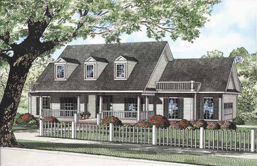 This plan is part of a historical Southern collection of house plans that honors traditional architecture while offering a fresh, updated feel. Vaulted ceilings and a flowing layout create a sense of spaciousness, while the formal dining room and large kitchen with snack bar make hosting guests effortless.