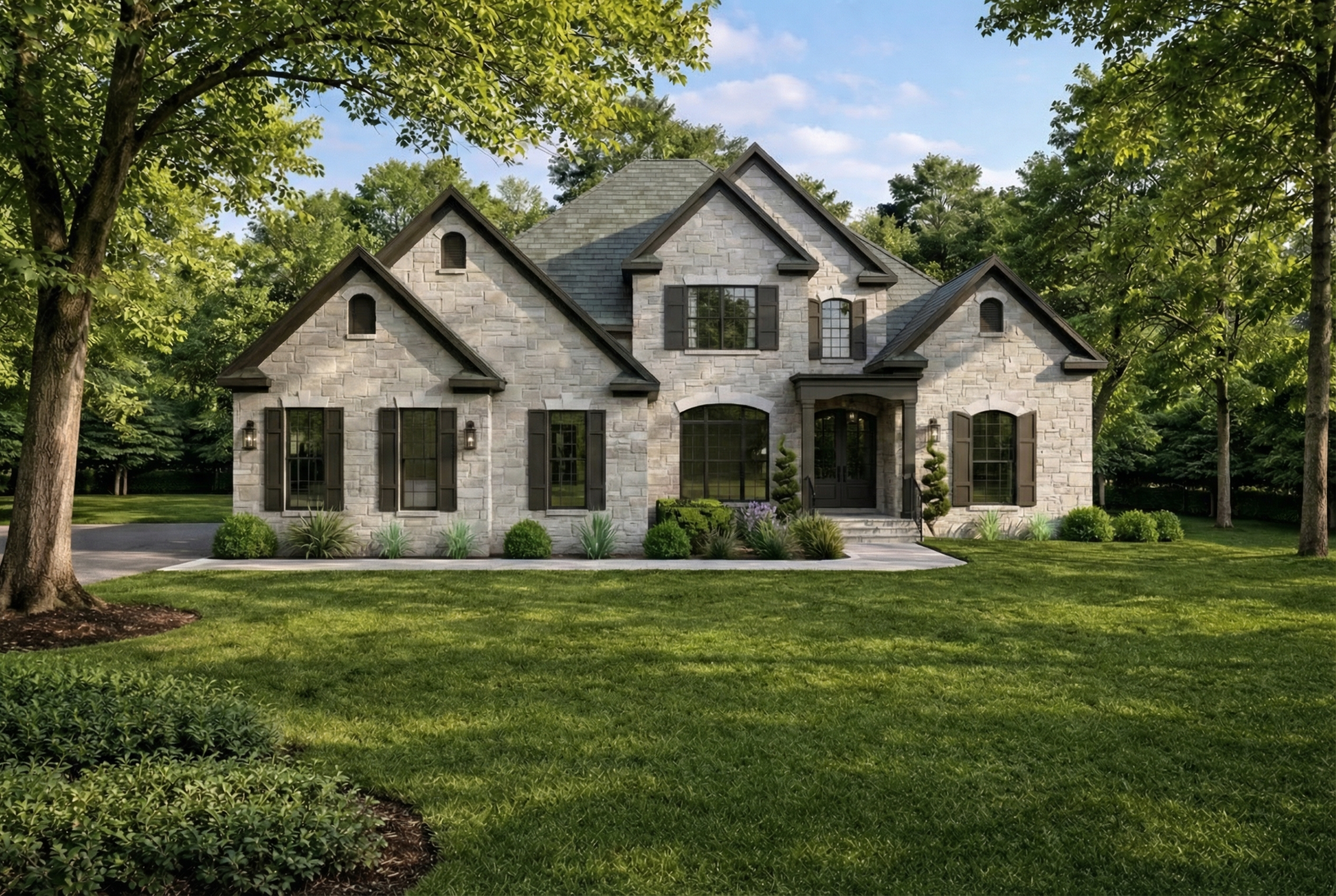 A clean white façade accented with bold black trim and shutters gives Westinview Place a sophisticated yet inviting presence. The timeless architectural lines and covered front entry create a truly impressive first impression. -