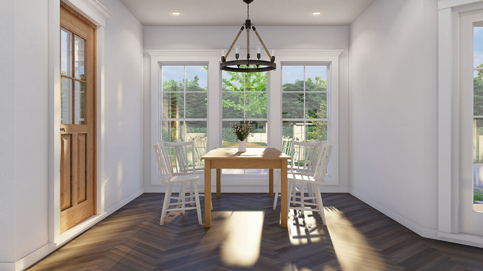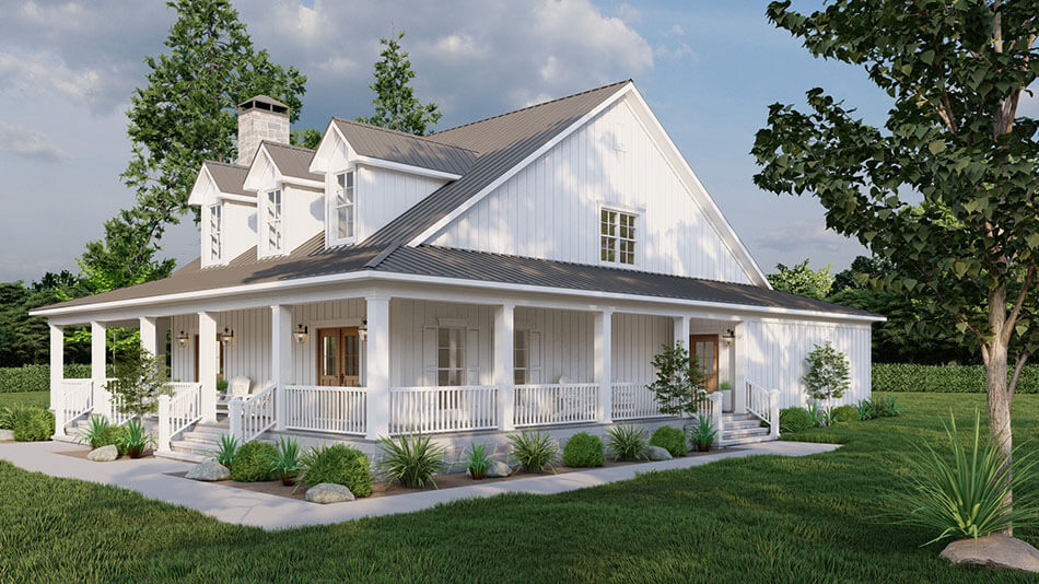 - Inviting Exterior & Porches: Classic farmhouse appeal with batten board siding, stone accents, and double‑door entries. A full wrap‑around porch provides outdoor space to relax or entertain.