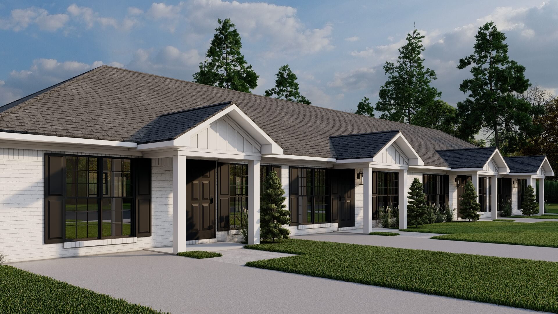 Outdoor living is enhanced by a 40-square-foot porch for each unit, providing a cozy space for residents to relax and enjoy the surroundings.