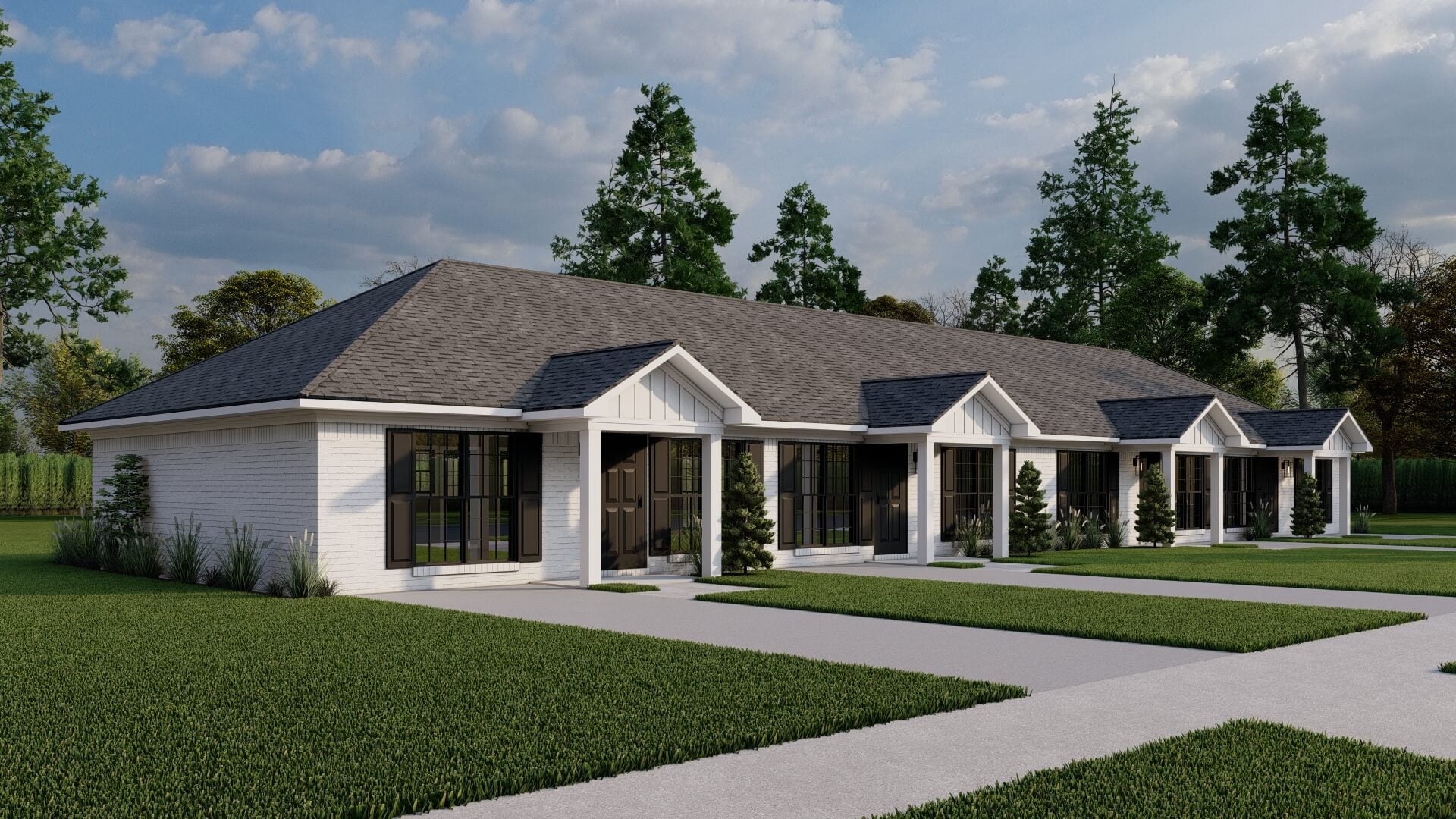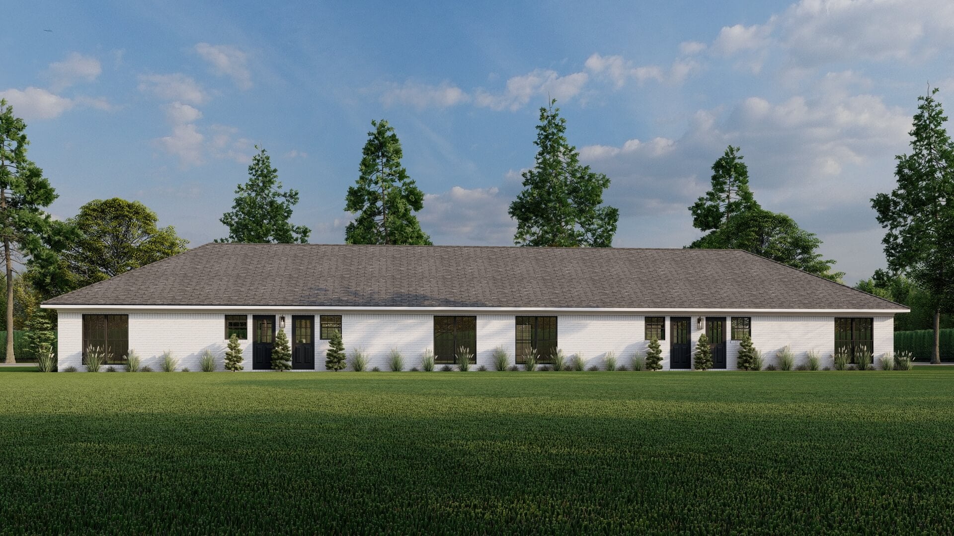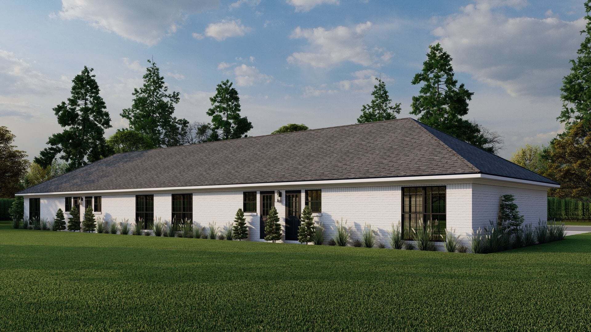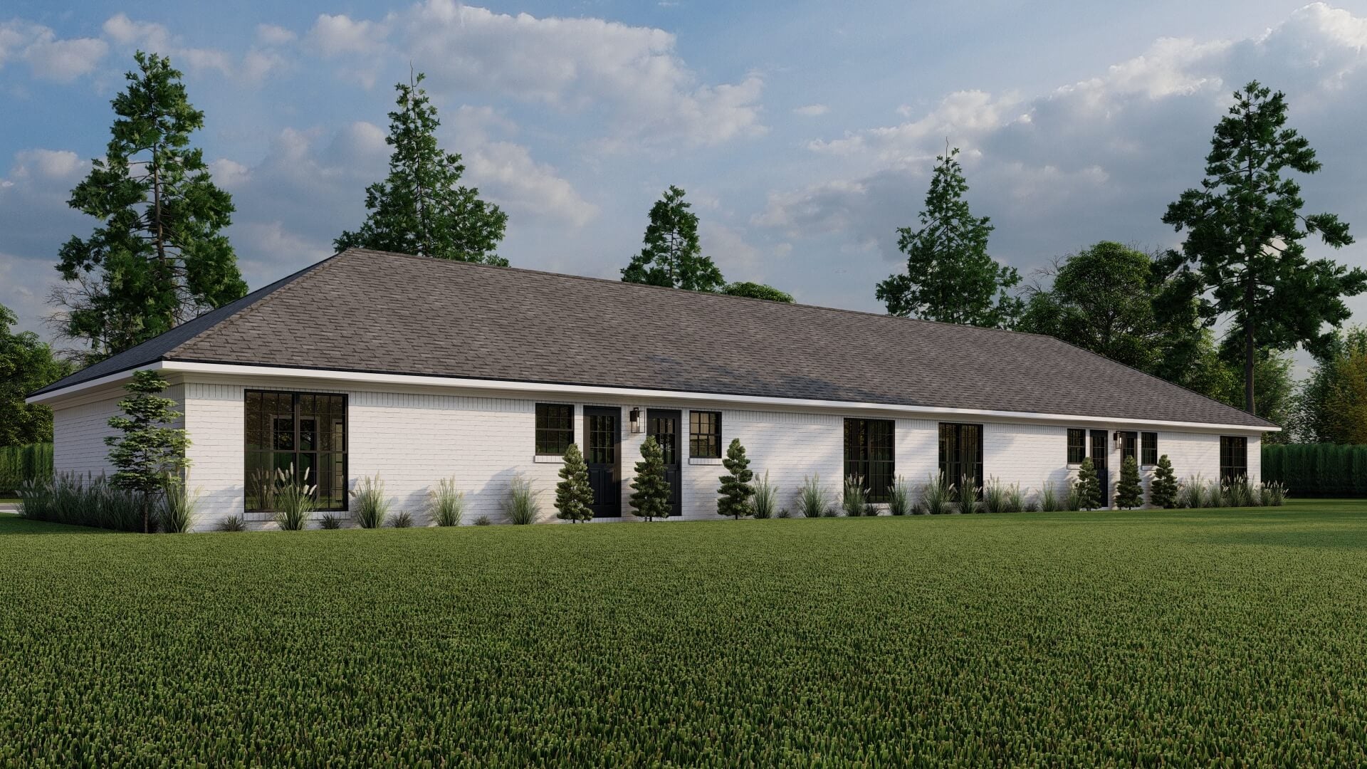 Avondale Arms MEN 5478 is a thoughtfully designed multi-family residence that combines functionality with comfort, making it an excellent choice for developers or investors seeking an efficient housing solution. This single-story building spans a total of 2,940 square feet of heated and cooled living space, divided into four identical units. Each unit offers 735 square feet, featuring two bedrooms and one full bathroom, catering to small families, couples, or individuals.