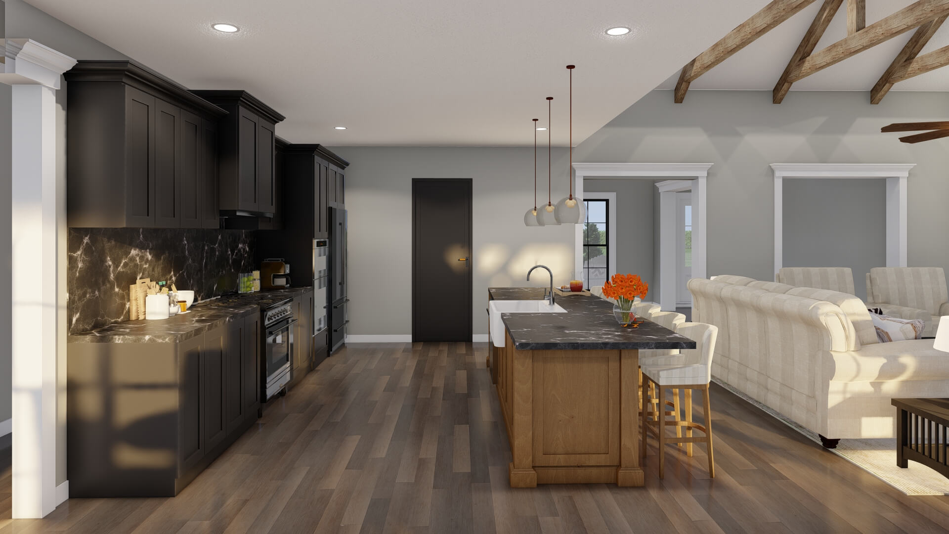 - Open living, dining, and kitchen spaces for effortless entertaining