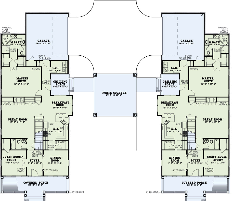 The Port Cochere, covered area between these dual family traditional homes, is your first hint that something special is waiting for you inside. Superior amenities of this three or four bedroom plan include a main level master suite that features a luxurious master bath with a separate glass shower and corner whirlpool bath as well as two separate walk-in closets. When family and friends gather in the great room they’ll be warmed by the cozy fireplace as they enjoy the media center or a book from the built-ins that also display treasured heirlooms. The welcoming grilling porch offers a degree of privacy while adding outdoor living space. A convenient butler’s pantry separates the kitchen and dining room. Upstairs, you’ll find two more generously sized bedrooms, a bath and bonus area.