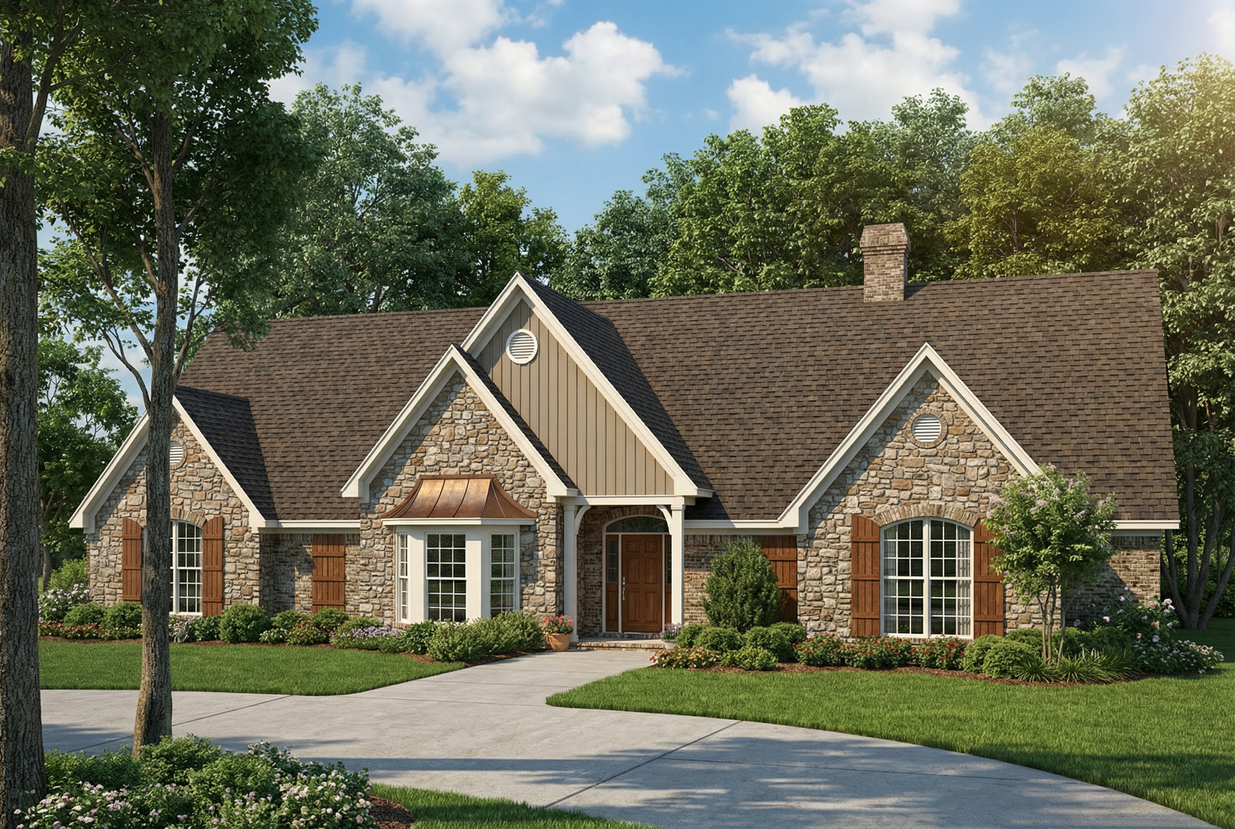 Step through the welcoming entry into an open, flowing layout where the great room, dining area, and kitchen connect seamlessly — perfect for everyday living and entertaining. The master suite provides a private retreat with a luxurious en‑suite, while additional bedrooms are spacious and comfortable for family or guests. A 3‑bay garage ensures plenty of storage and parking space, and the 1.5‑story design adds flexibility for future needs. With its timeless exterior, thoughtful floor plan, and functional spaces, House Plan 669 Glendale Avenue is one of the most desirable house plans for families seeking style, comfort, and practicality.