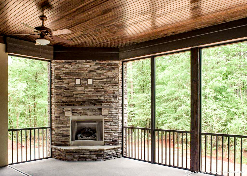 • Outdoor living area with outdoor kitchen, grill, and stone fireplace — ideal for hosting friends, family, or relaxed evenings outdoors