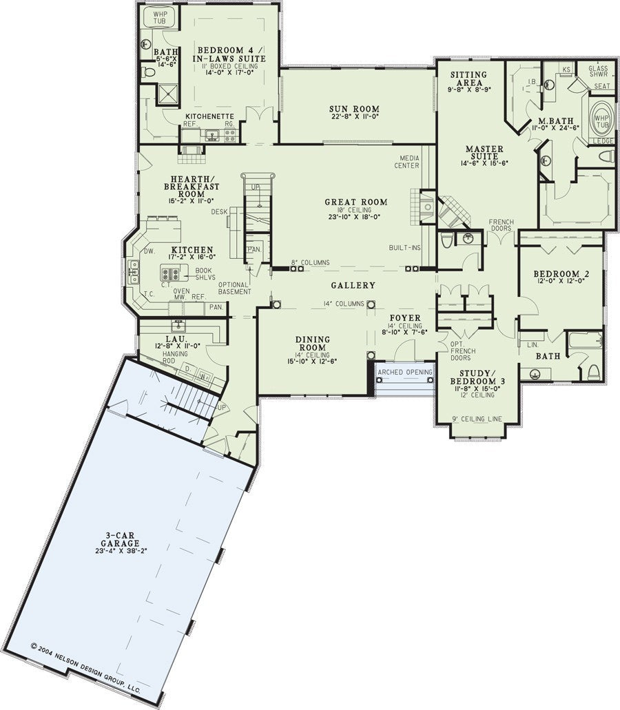 Discover refined elegance and thoughtful design in House Plan 1118 Linden Avenue, a stunning one‑story Renaissance home offering approximately 4,300 sq ft of heated living space. This generous layout includes 4 bedrooms, 4 full baths, and 1 half bath, making it ideal for families who enjoy comfortable everyday living, gracious entertaining, and hosting guests. Step inside to a generous great room with a cozy fireplace that creates an inviting focal point for gatherings. The well‑appointed kitchen features abundant counter space, bar seating, and an island cooktop area — perfect for culinary enthusiasts. A private guest suite with its own kitchenette adds flexibility and hospitality for extended stays, while the main living areas and master suite provide luxury and comfort. An upper floor offers endless possibilities for a home theater, office, or bonus space, and a huge bonus room above the garage gives even more room for recreation or storage. With classic architectural styling and versatile living areas, Linden Avenue delivers luxury, function, and timeless appeal for modern living.