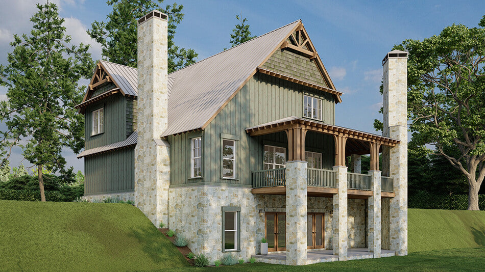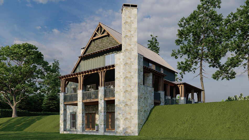 White River Retreat (NDG 1337-1) is a warm, inviting, cabin-style home designed for families, vacation living, or anyone wanting a spacious retreat surrounded by nature. With three levels of flexible living space, expansive porches, and an open, welcoming layout, this design is perfect for a riverfront lot, mountain setting, or as a year-round getaway home.