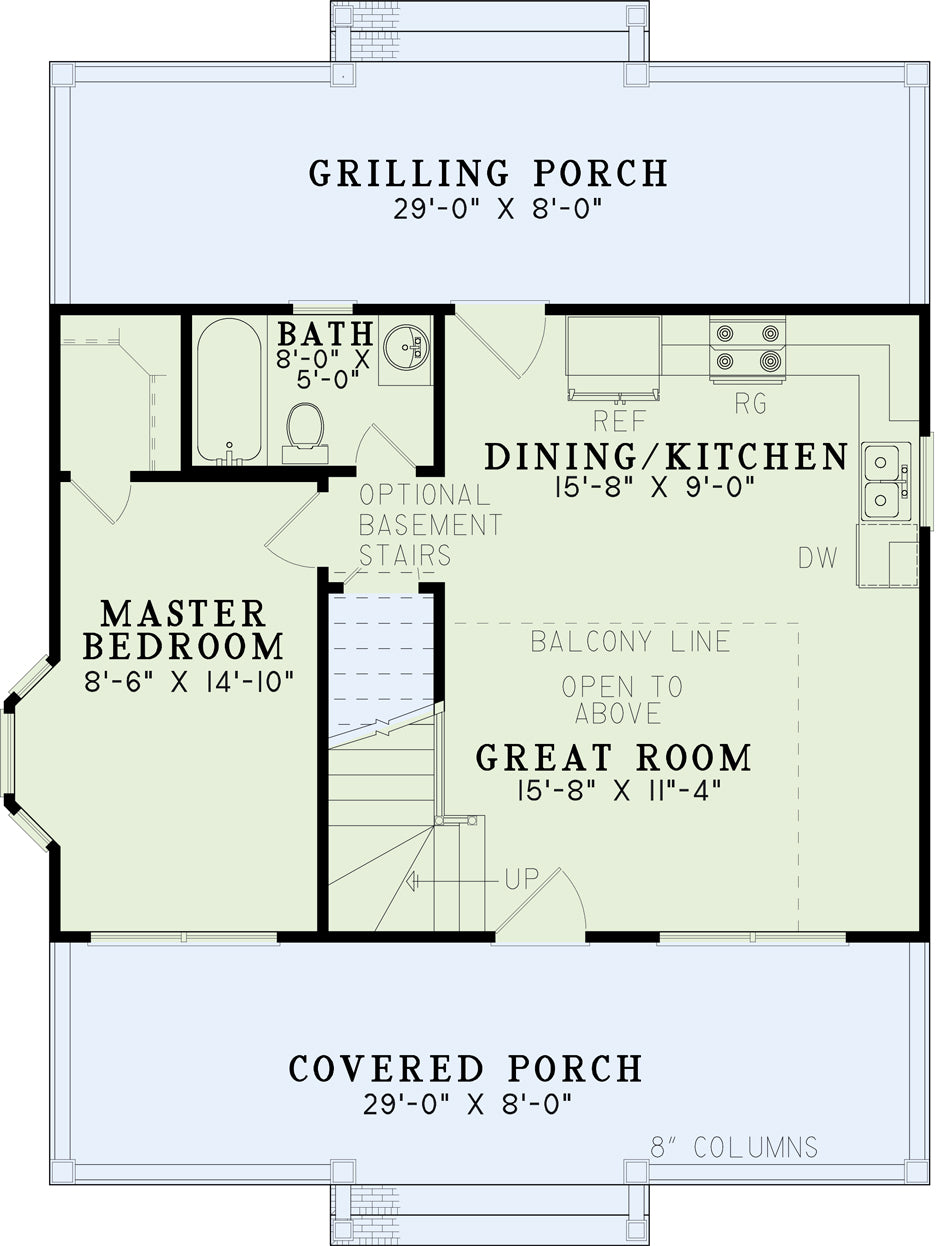 • Approximately 975 square feet of total living space, with covered porch space expanding the footprint