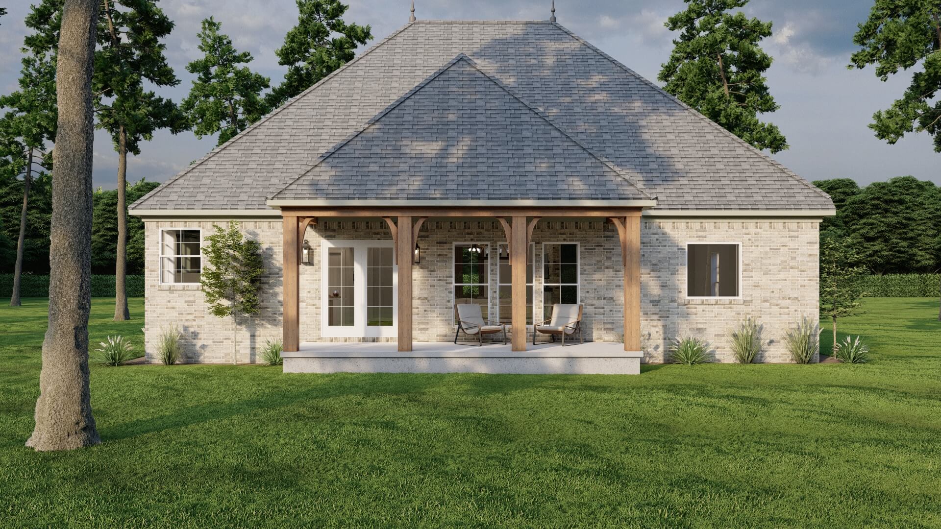 - Covered front porch and covered rear porch for outdoor living and curb appeal