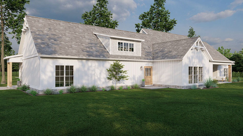 - Modern Farmhouse Aesthetic: Clean lines, a neutral exterior, and classic farmhouse features create a warm and inviting architectural style.
