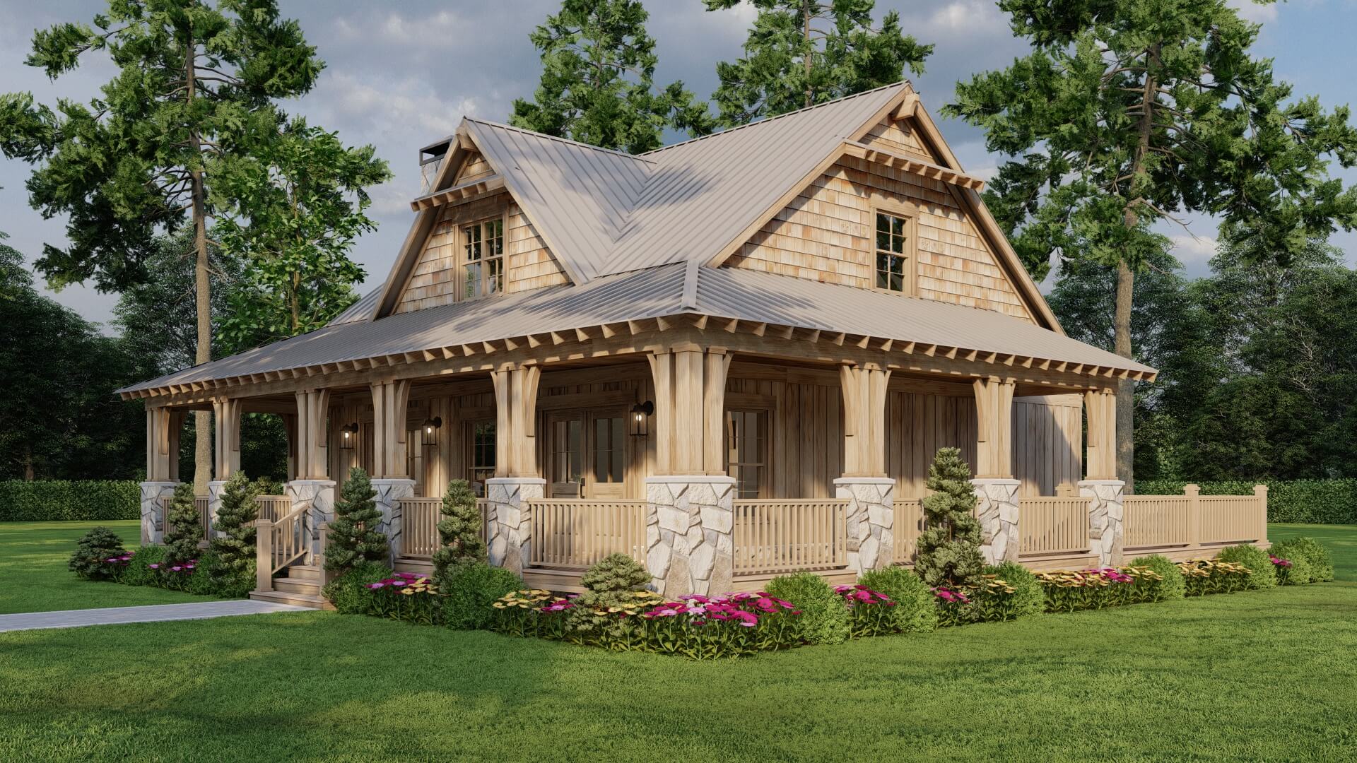 Discover peaceful escape living with the Cedarwood Retreat House Plan MEN 5423, a rustic‑inspired 1,660 sq ft home featuring 3 bedrooms, 2 full baths, and 1 half bath in a 1.5‑story design. With a spacious wrap‑around porch and thoughtful layout, this plan invites relaxation, natural light, and cozy comfort in a cabin‑style setting.