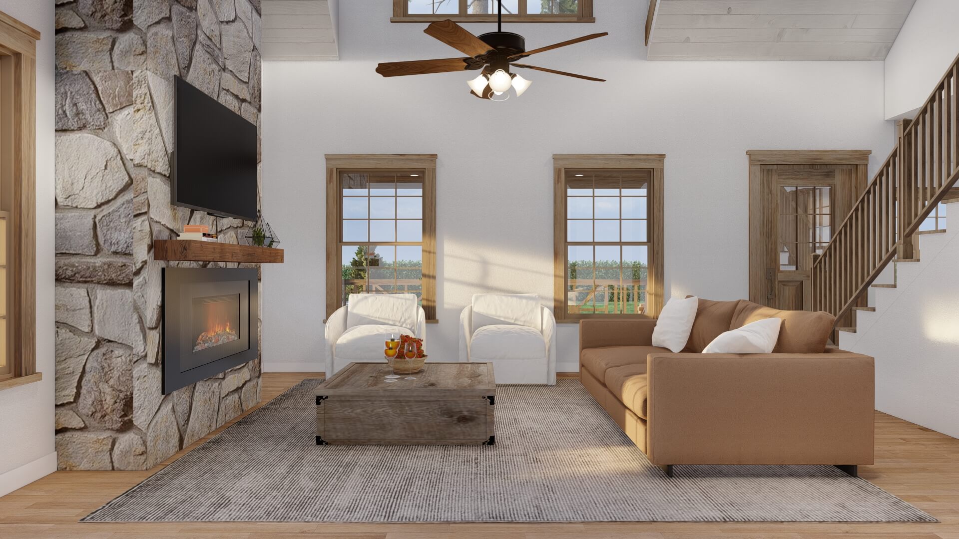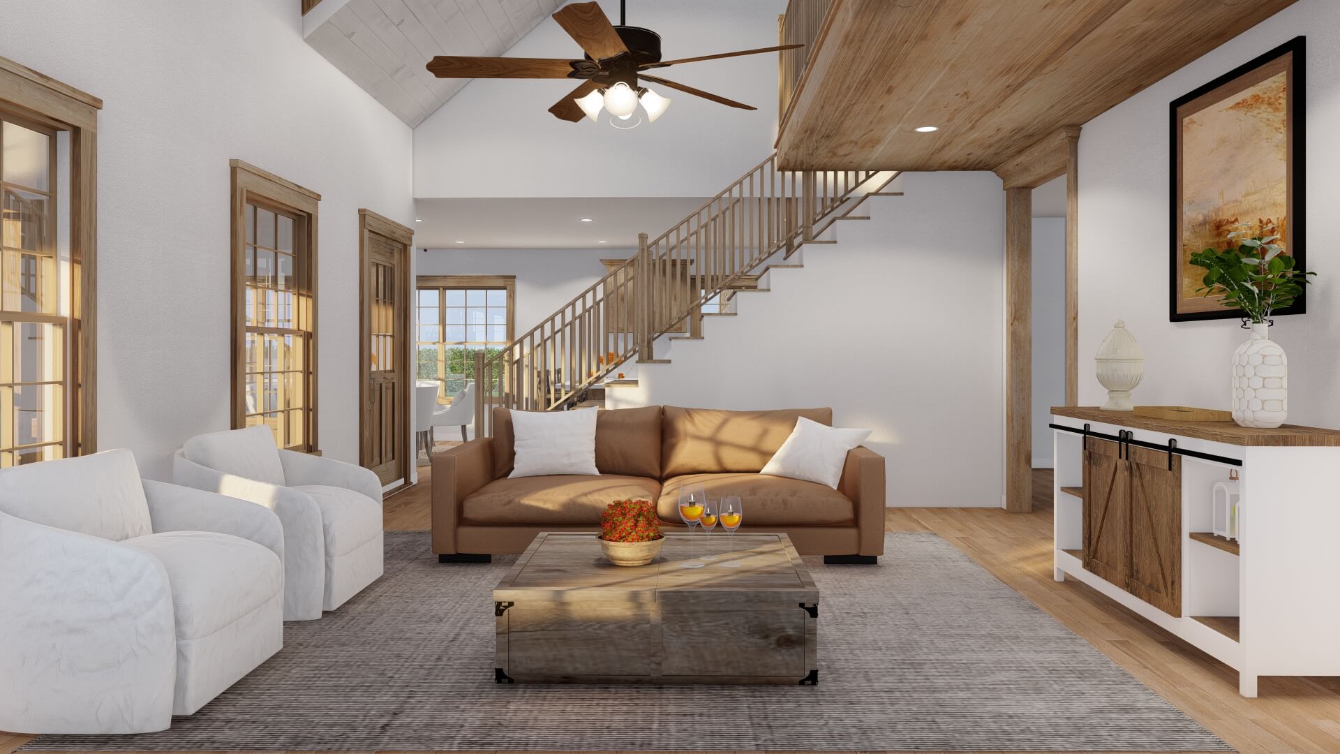 - Modern farmhouse design with rustic charm and contemporary features