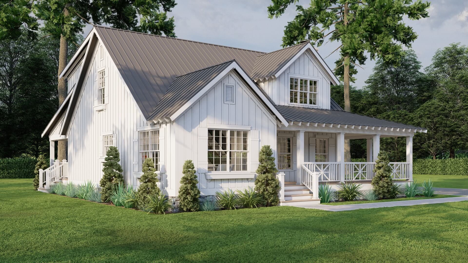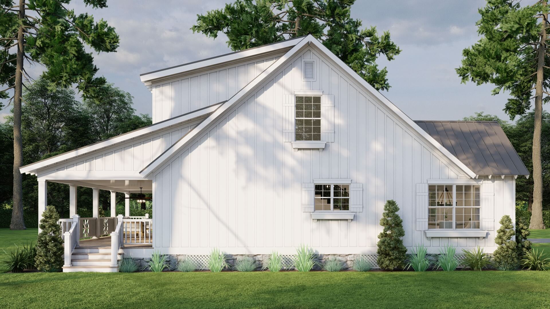 House Plan 5446 – Spring River Retreat is an exceptional modern farmhouse by Nelson Design Group, offering a generous 1,836 square feet of living space. Featuring 3 spacious bedrooms, 2 full bathrooms, and 1 half bath, this stunning home is designed to provide both comfort and functionality for modern living.